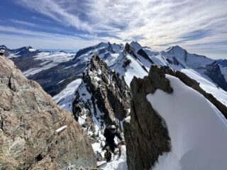 Condizioni perfette, meteo fantastico e panorama davvero mozzafiato. Partiti dalle Guide d’Ayas e attaccato l’Orientale alle 7, tutta la traversata senza code.