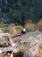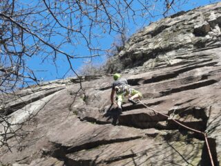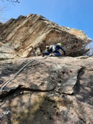 Con 20 minuti di cammino su sterrata malconcia e poi sentiero( indicazione tre porcellini) si arriva alla base della via La roccia e bella, con numerosi…