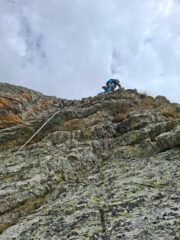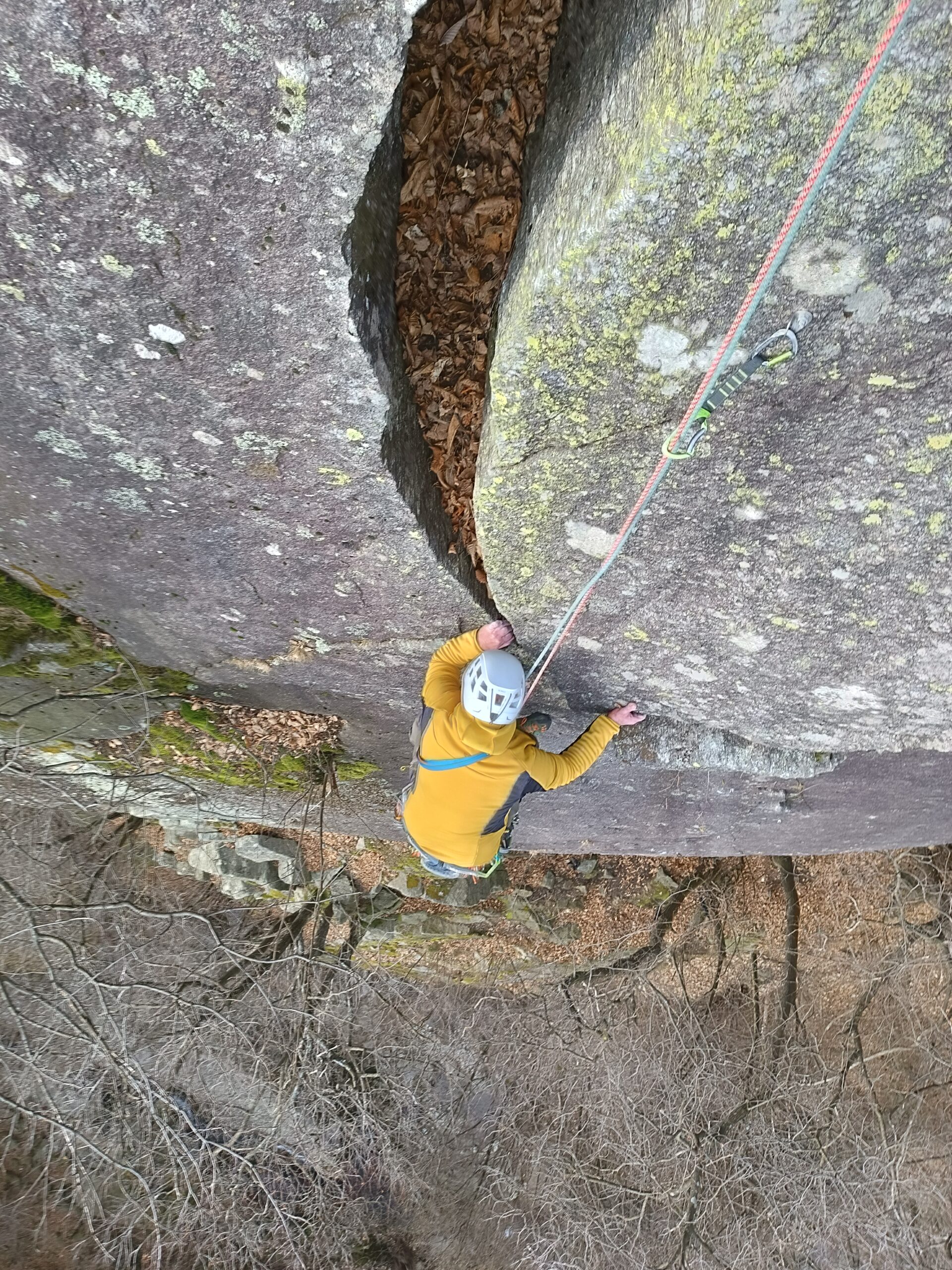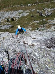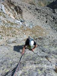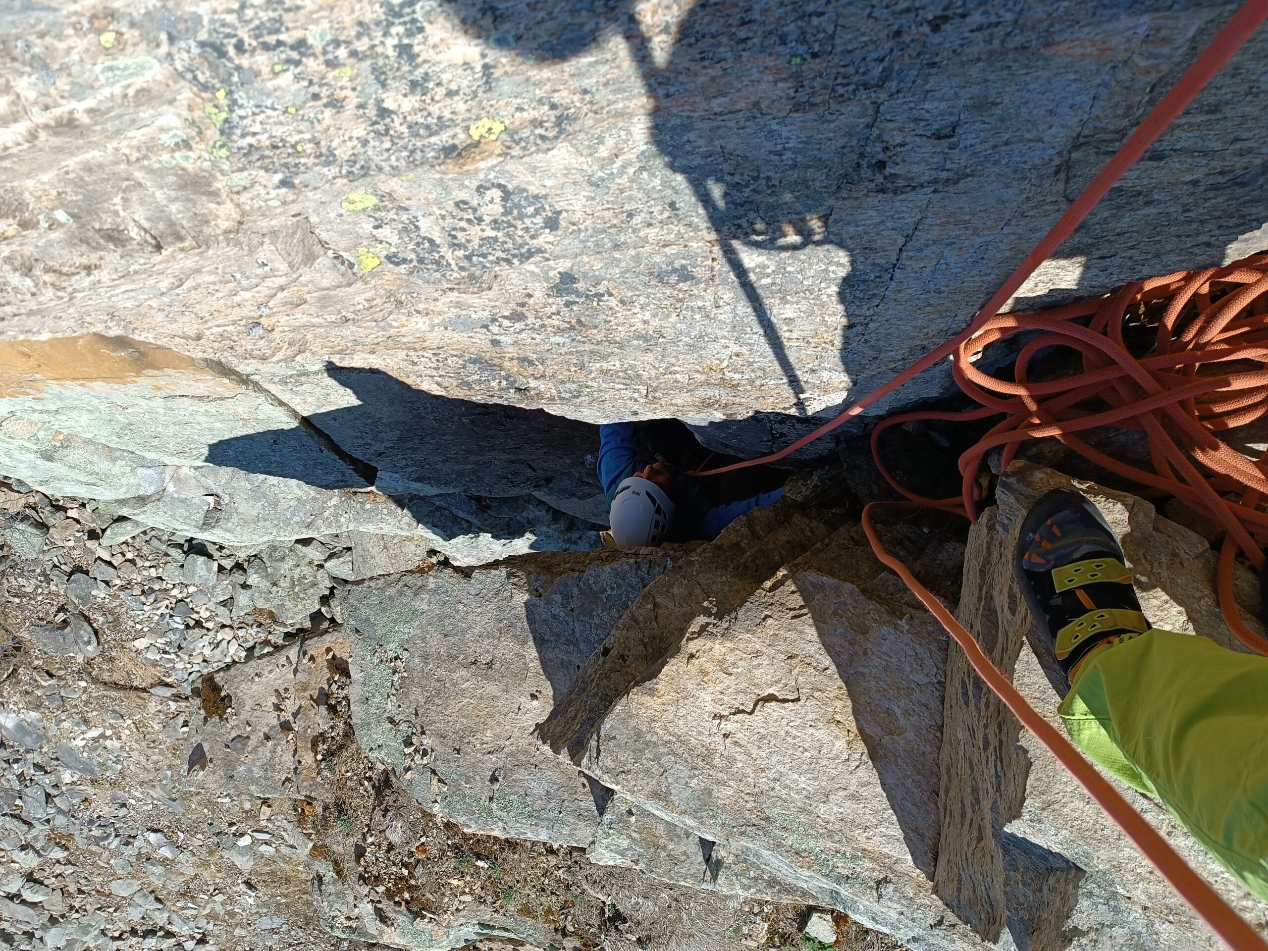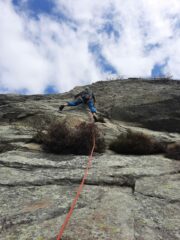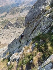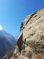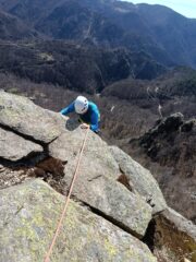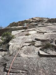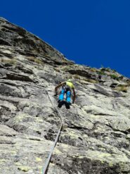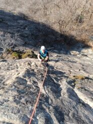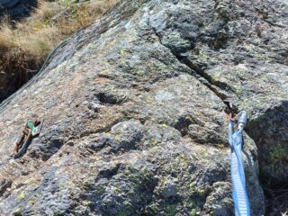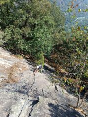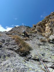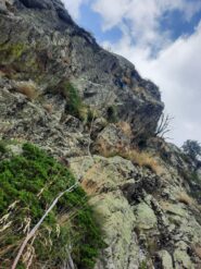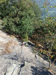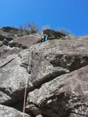Avvicinamento come tutte le altre vie del settore ovest, attacca subito dopo la" Di Giorgio Giglio" e " Una via di mezzo"