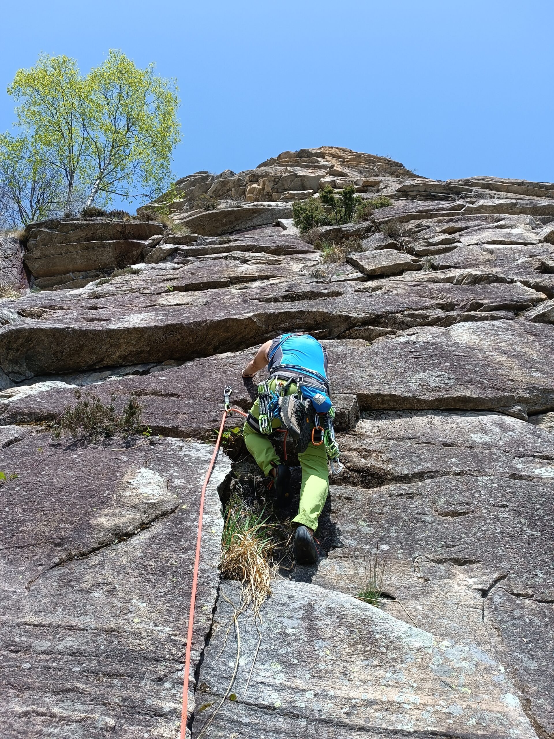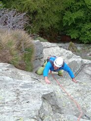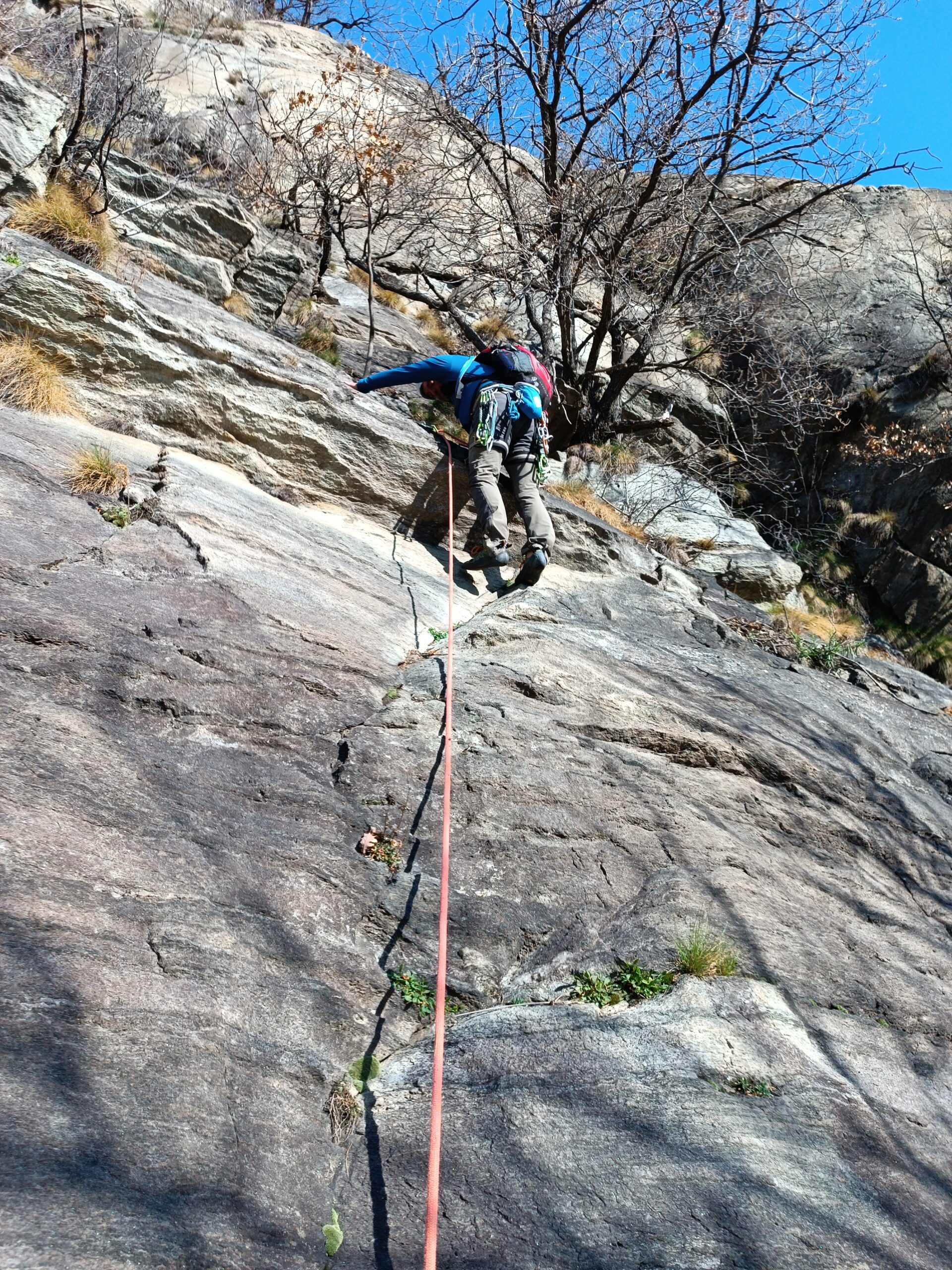 Avvicinamento abbastanza veloce su sentierino evidente .Roccia molto sporca nei primi tiri poi megglio .La via e attrezzata (poco)a chiodi e spit molto…