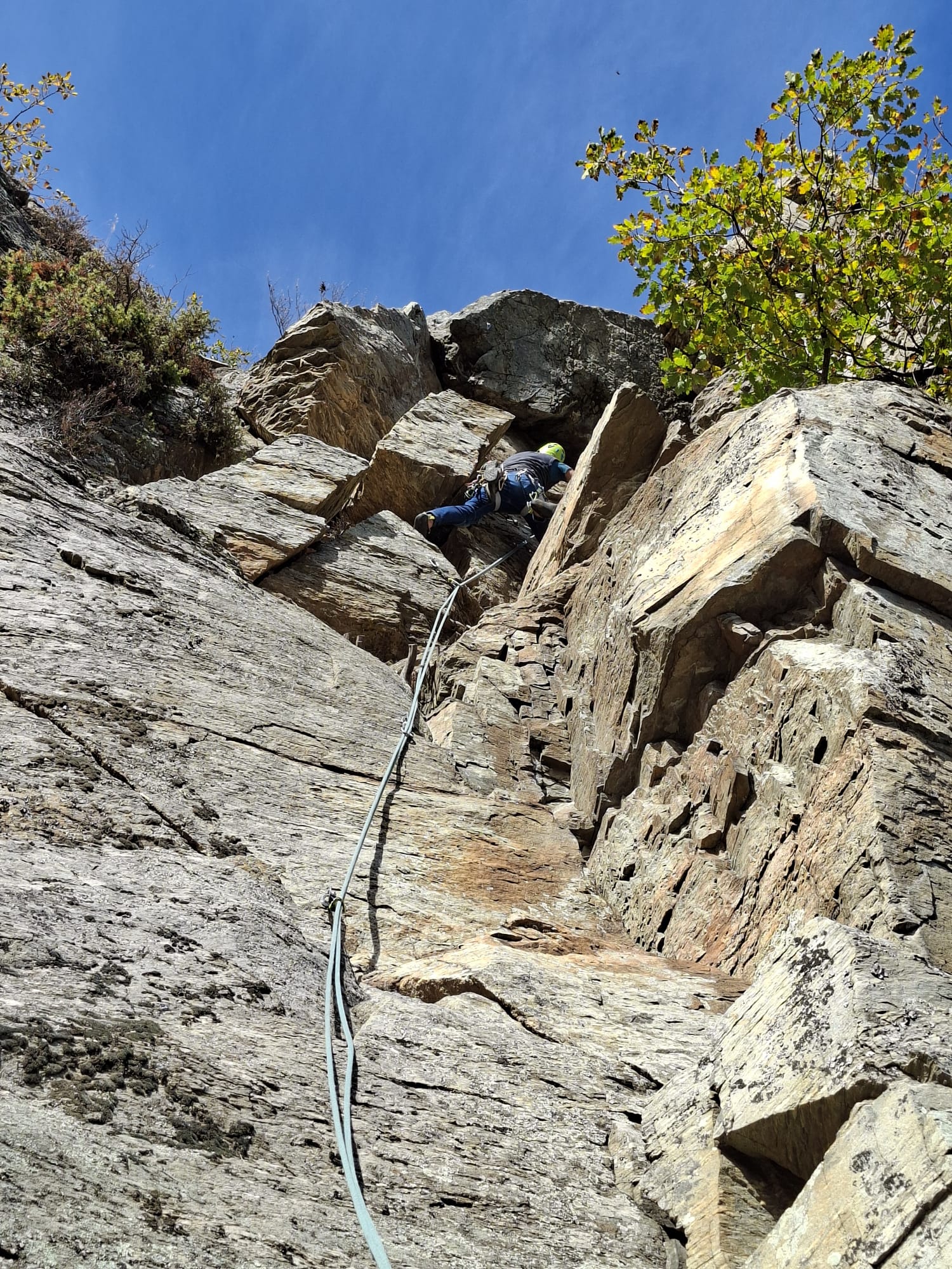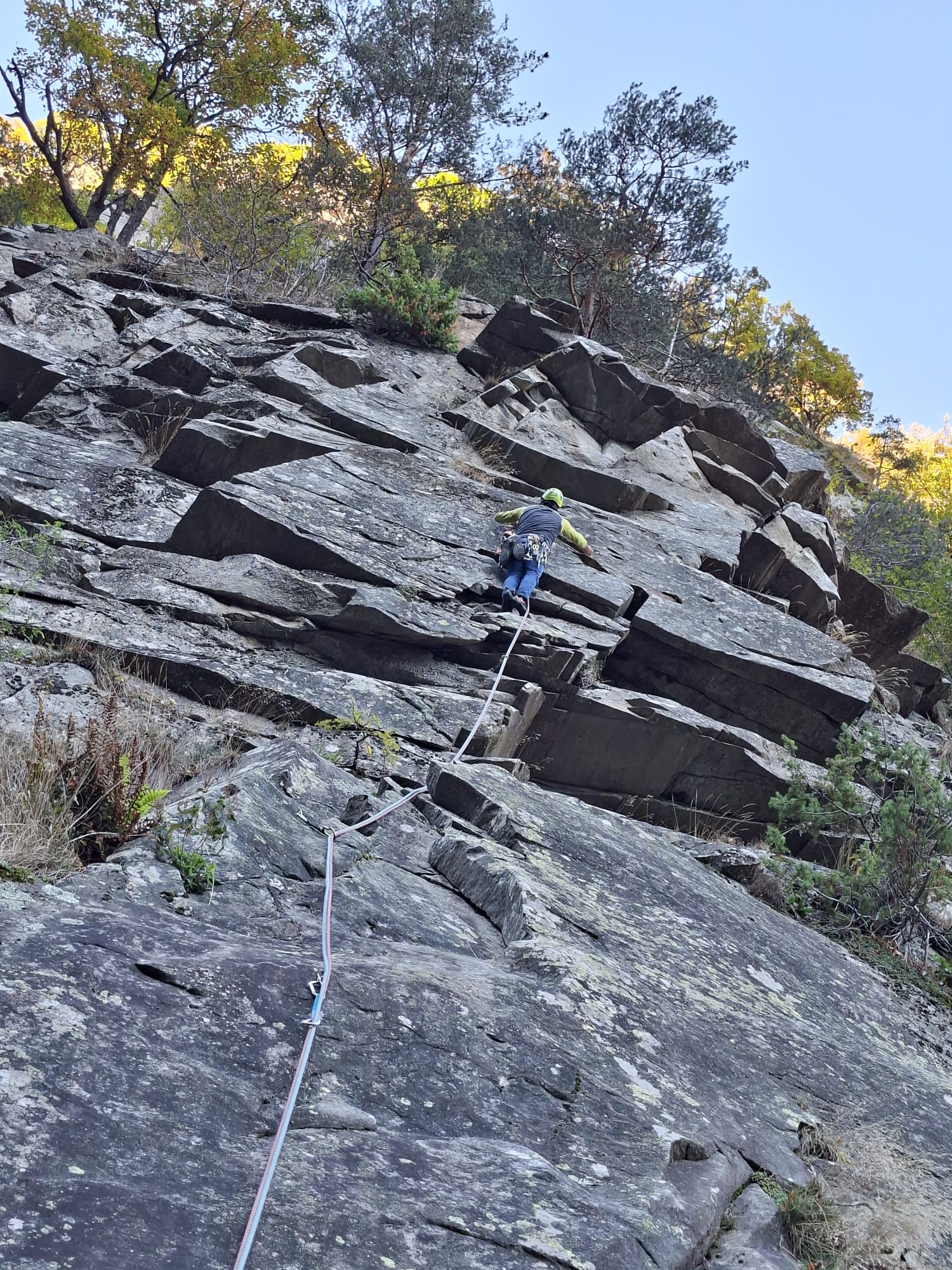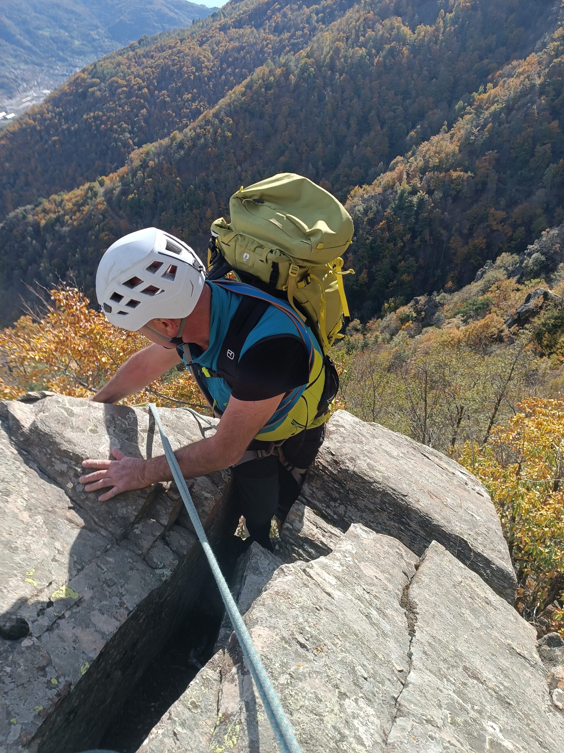 Protezioni ottime, soste comode da collegare Roccia ottima nei tiri con i passi più importanti ,discesa x traccia di sentiero sul versante opposto(qualche ometto) una…