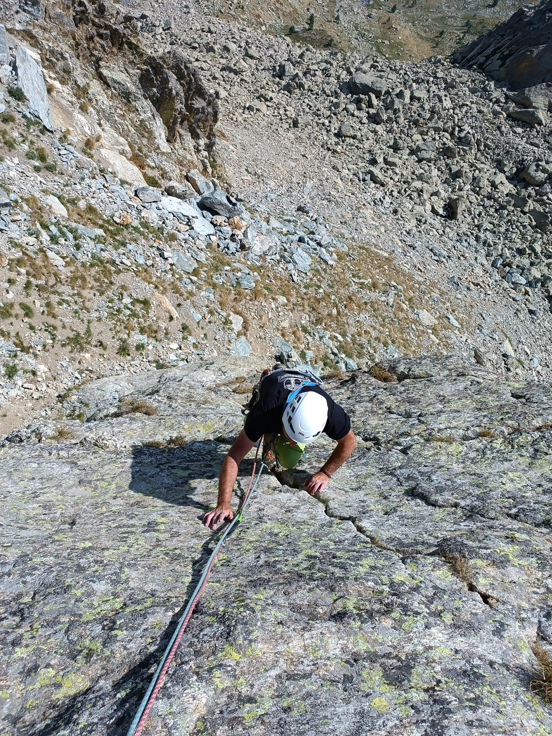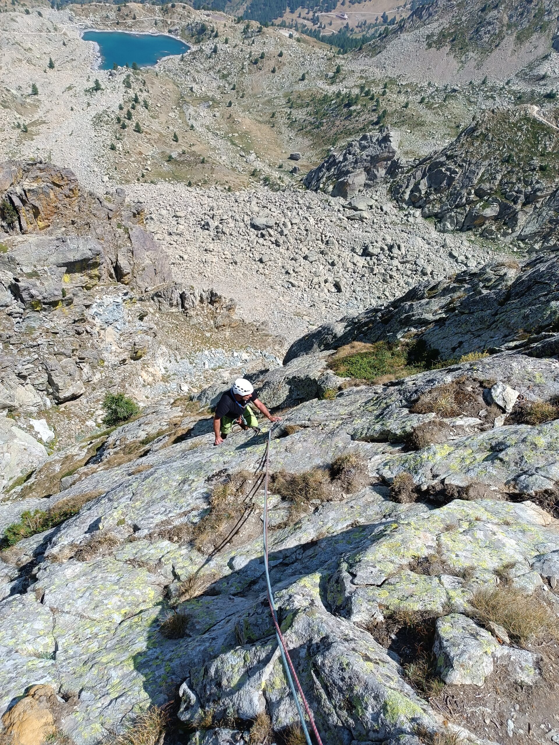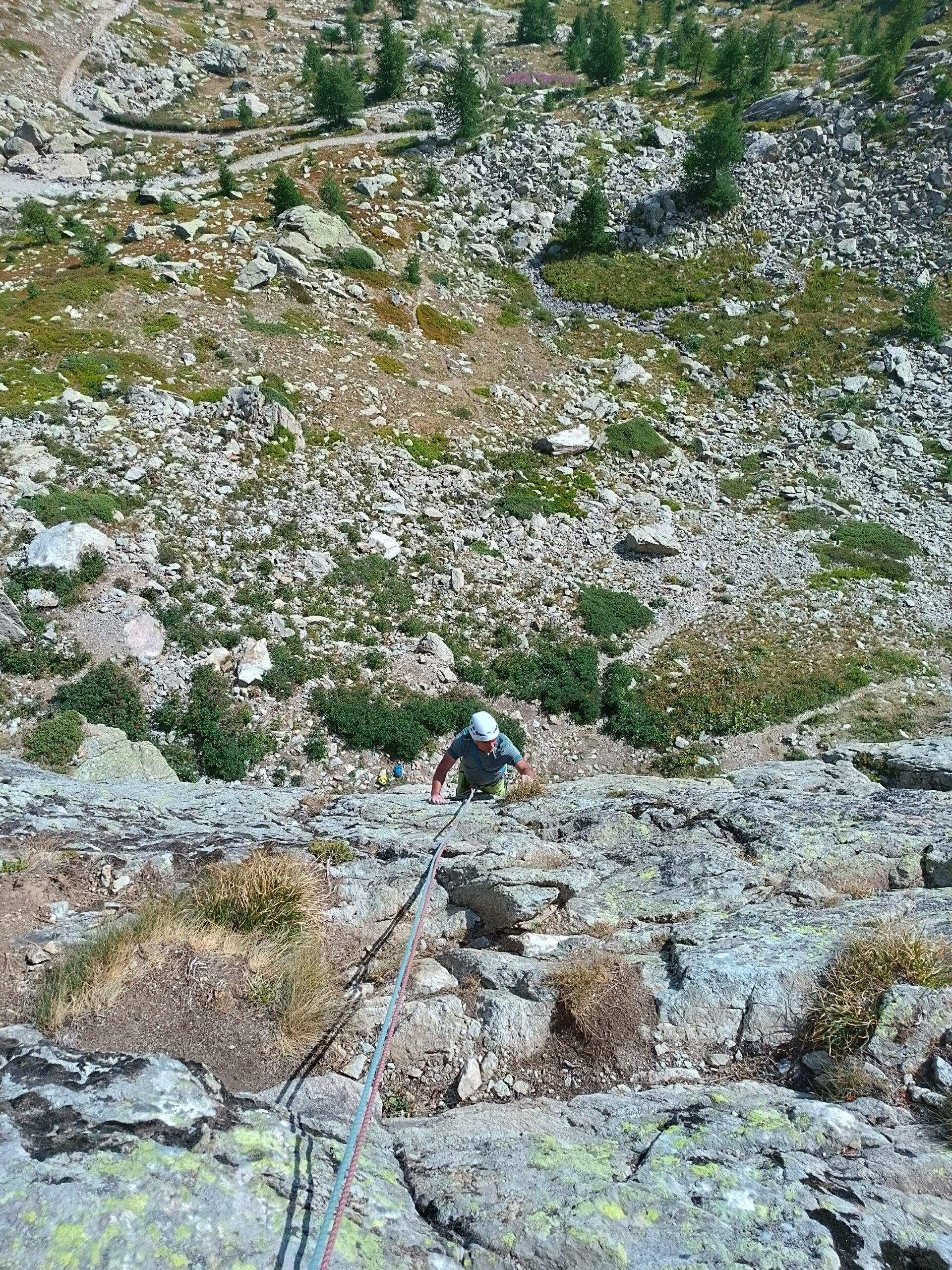 Protezioni ottime, soste comode da collegare Roccia ottima nei tiri con i passi più importanti ,discesa x traccia di sentiero sul versante opposto(qualche ometto) una…