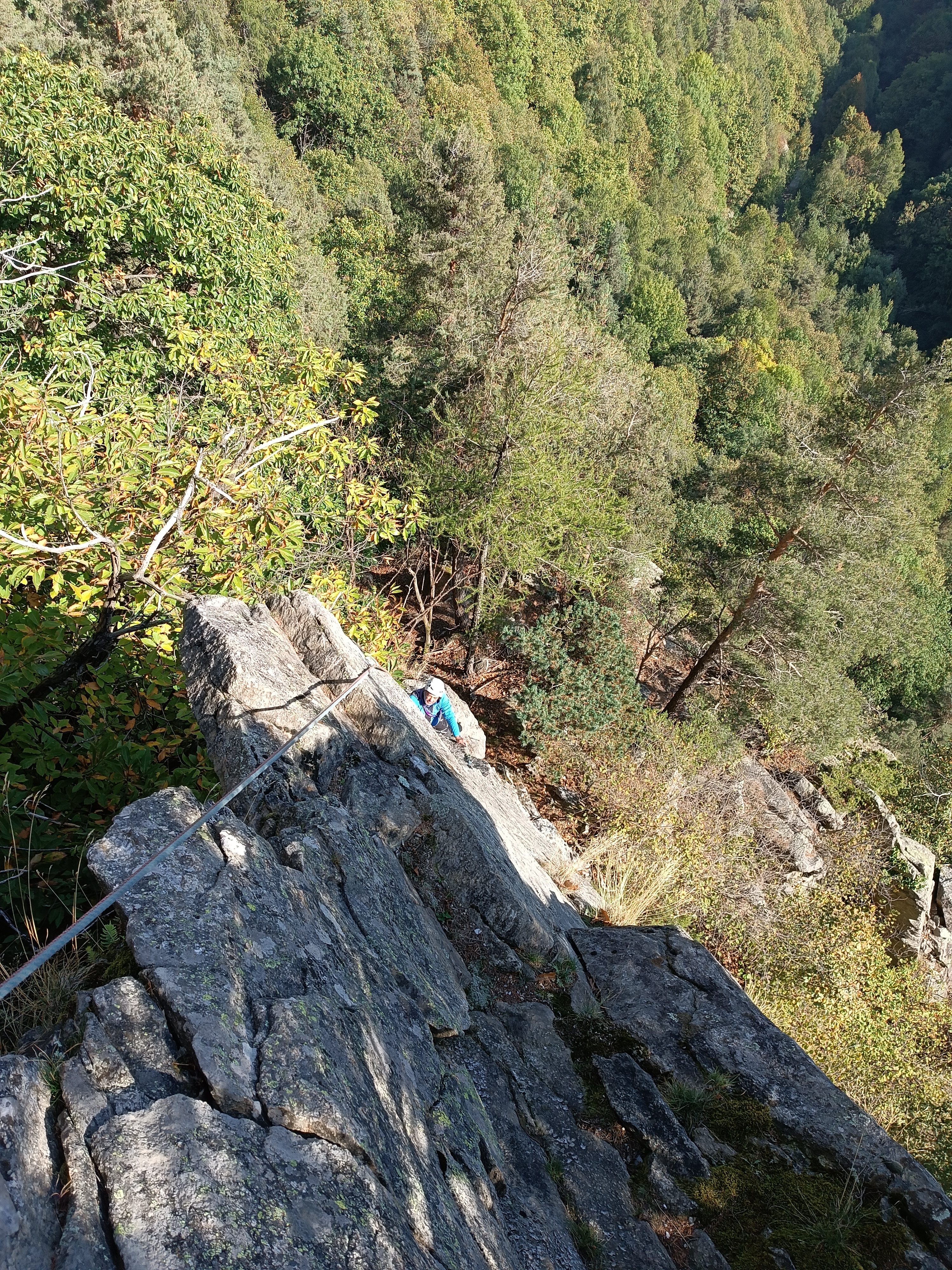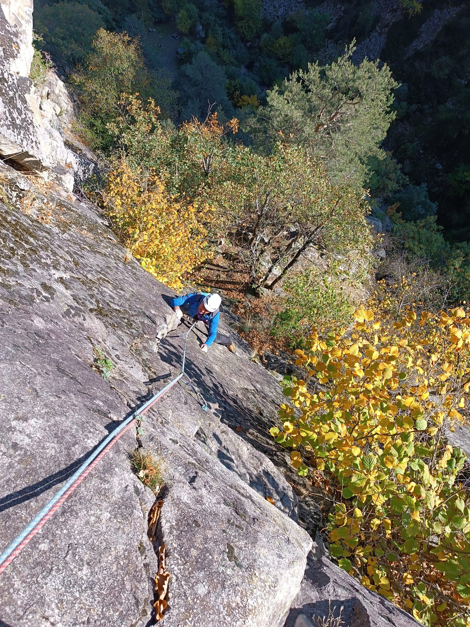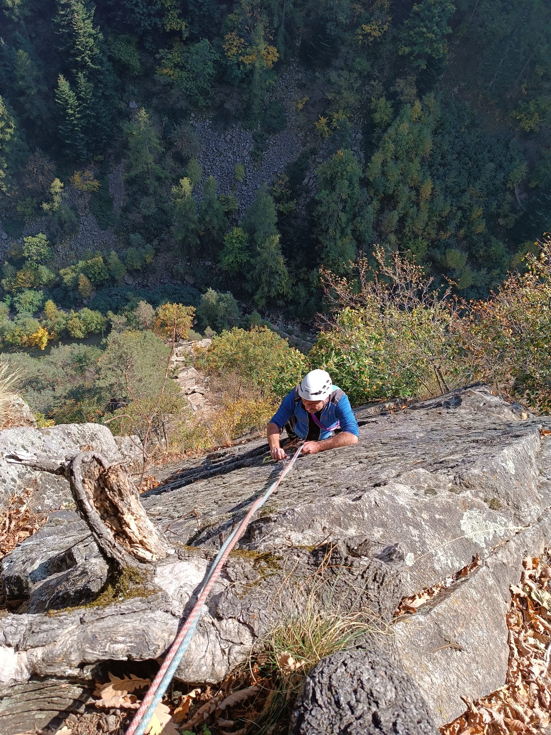 Avvicinamento su sentiero sempre "in ordine"(un po' di fogliame ma ci sta') In parete spit e soste ok .