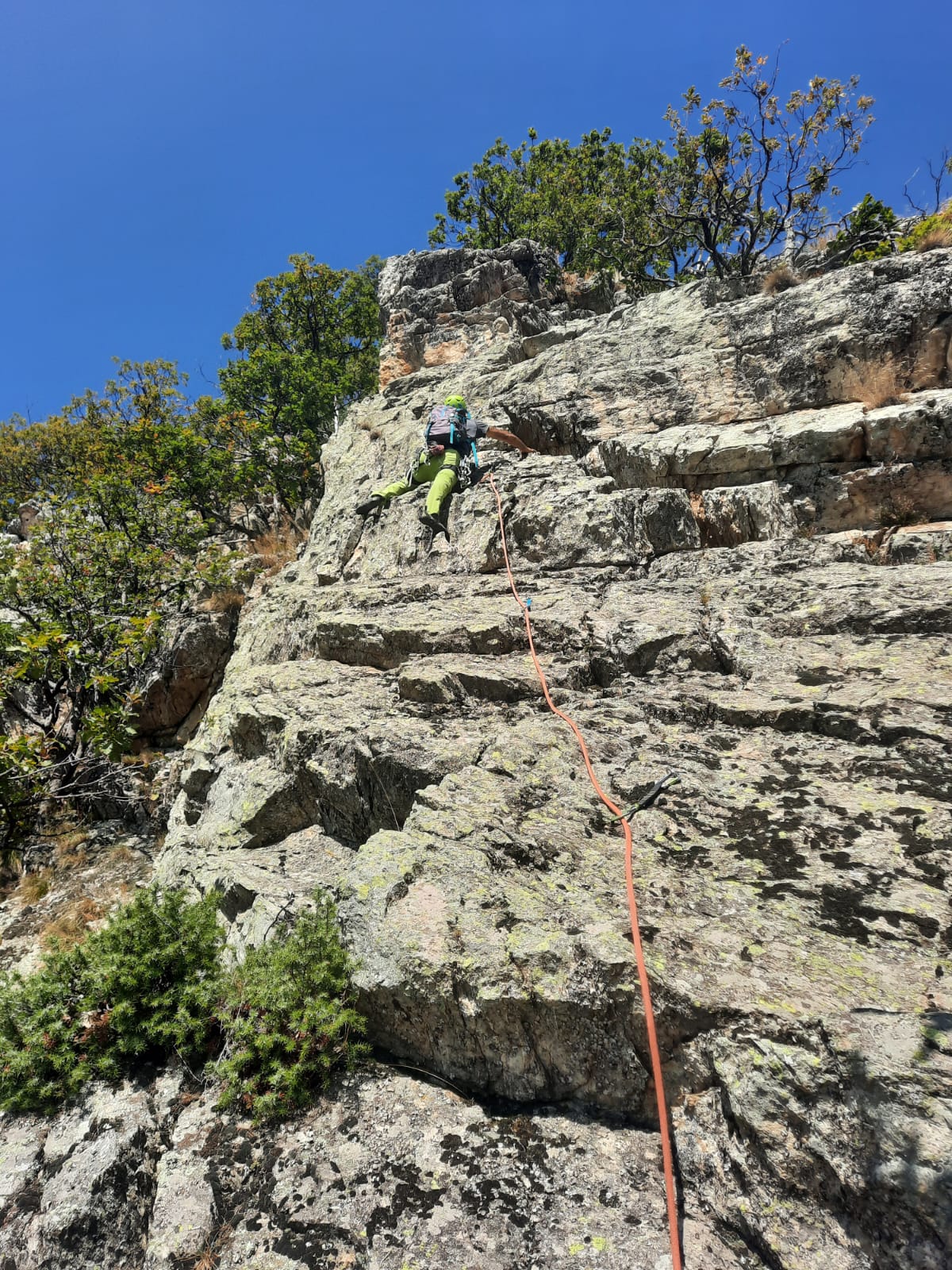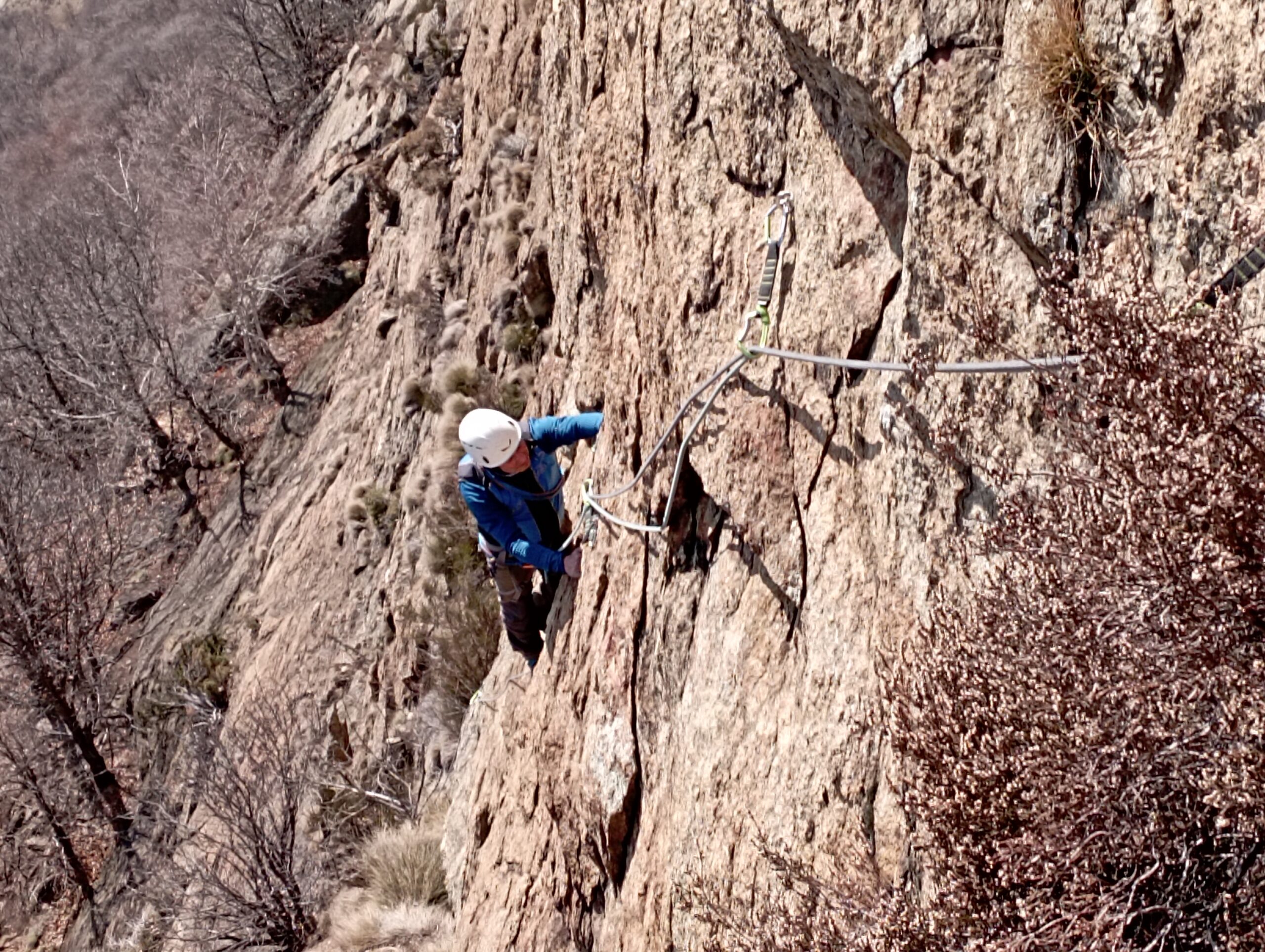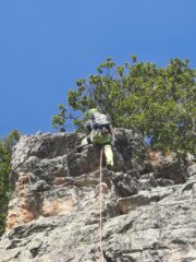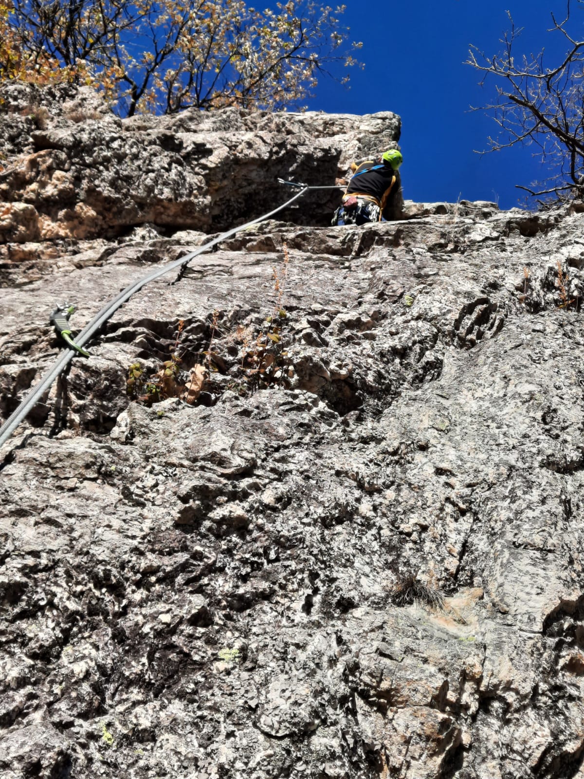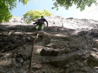 Attrezzatura in ordine, soste su alberi con cordini un po' datati ma ancora sicuri... Accesso alle pareti in 10 /15 minuti da dove si lascia l'auto....