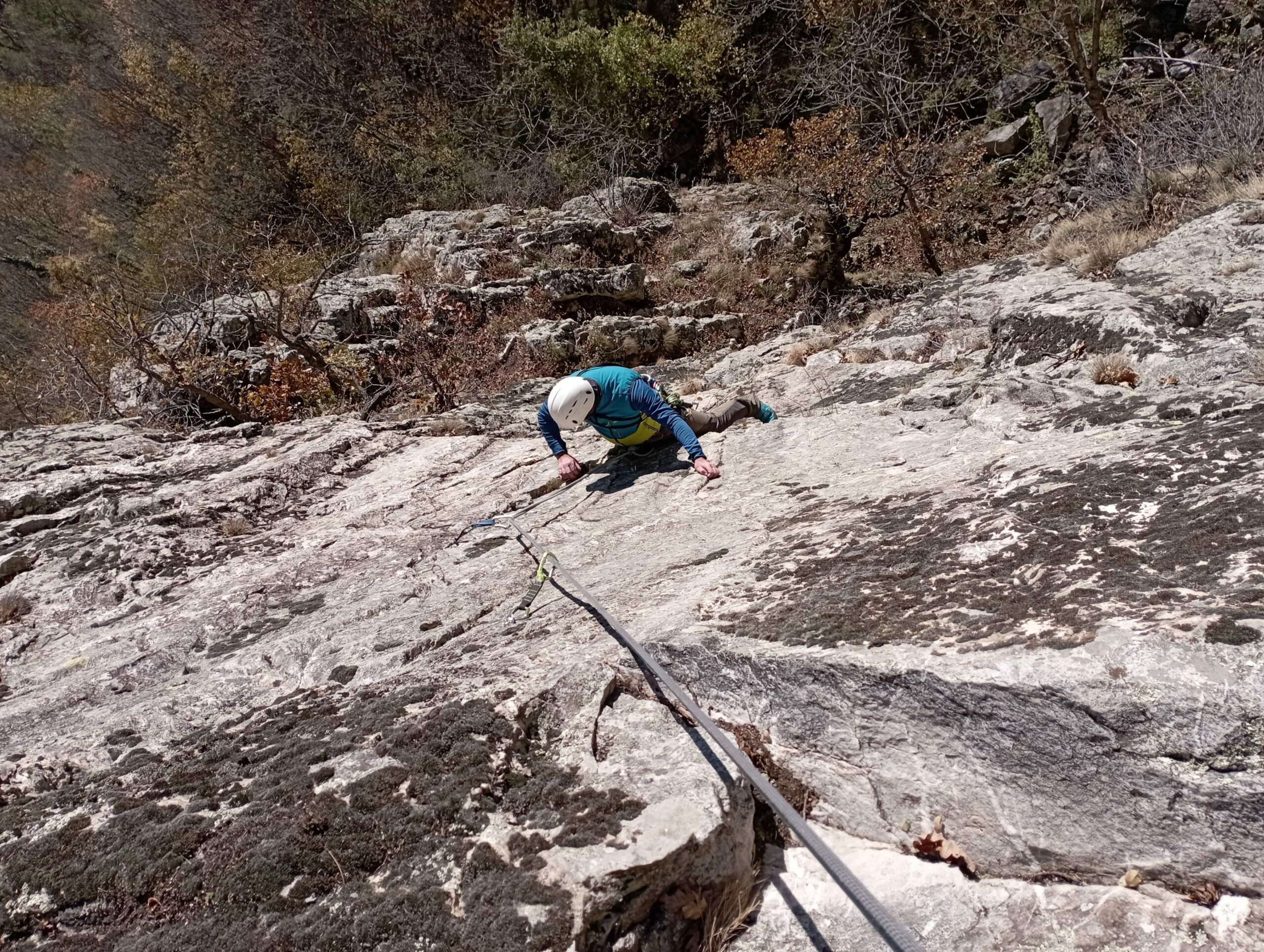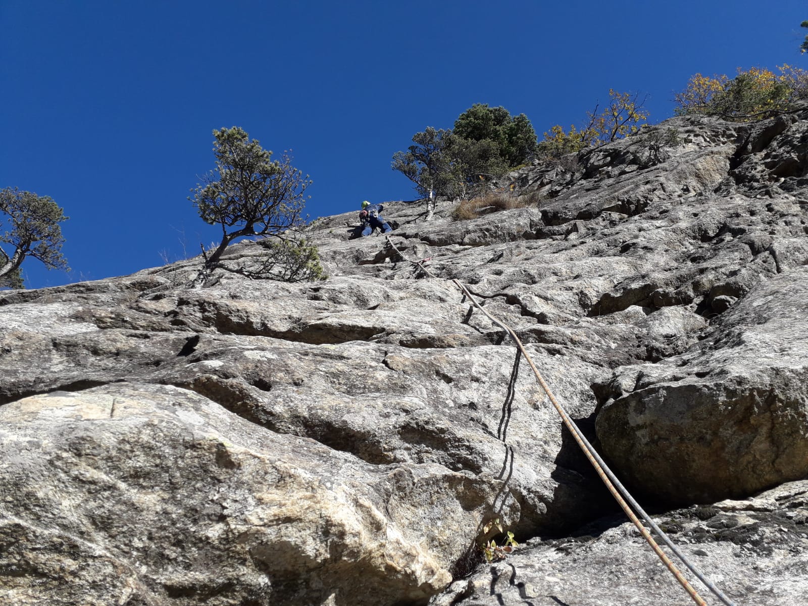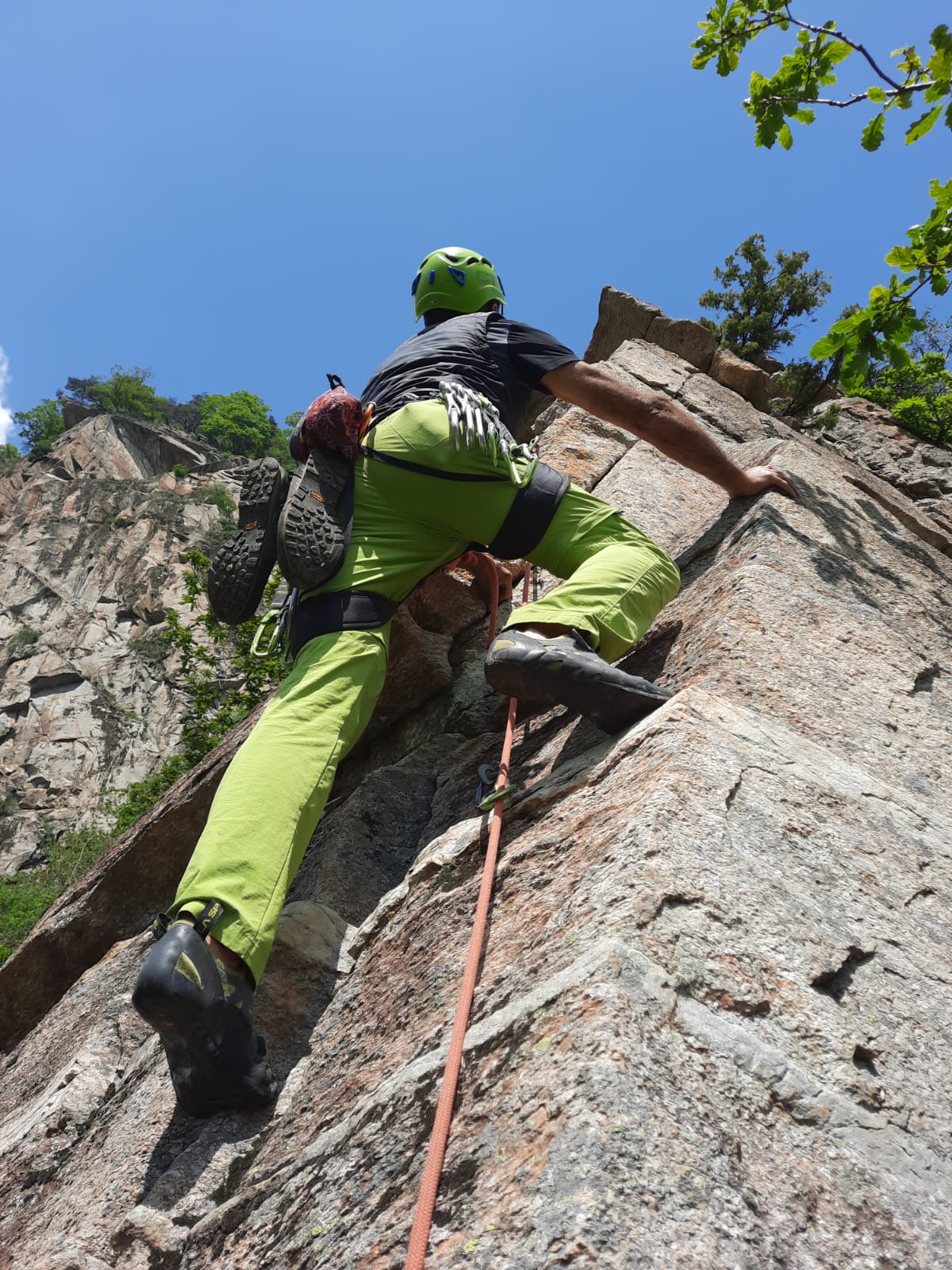Attrezzatura in ordine, soste su alberi con cordini un po' datati ma ancora sicuri... Accesso alle pareti in 10 /15 minuti da dove si lascia l'auto....