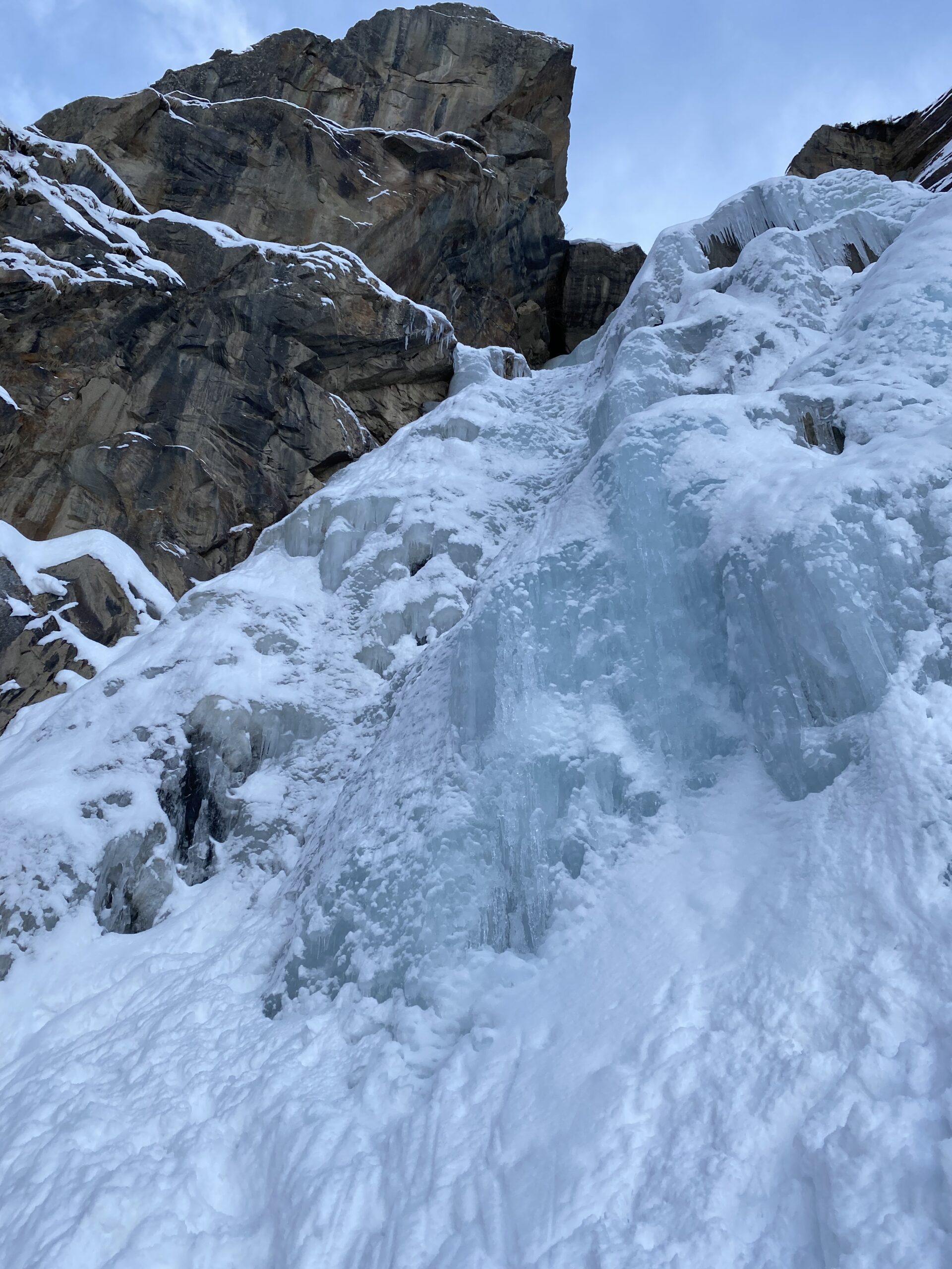 Condizioni molto buone in tutti i tiri ghiaccio a tratti un po’ spaccoso ma comunque buono e divertente, molti gradini