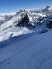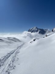 Primo tratto di discesa per 200 metri circa bisogna stare attenti a qualche pietra nascosta, per il resto è solo spettacolo sciato fino al parcheggio,…