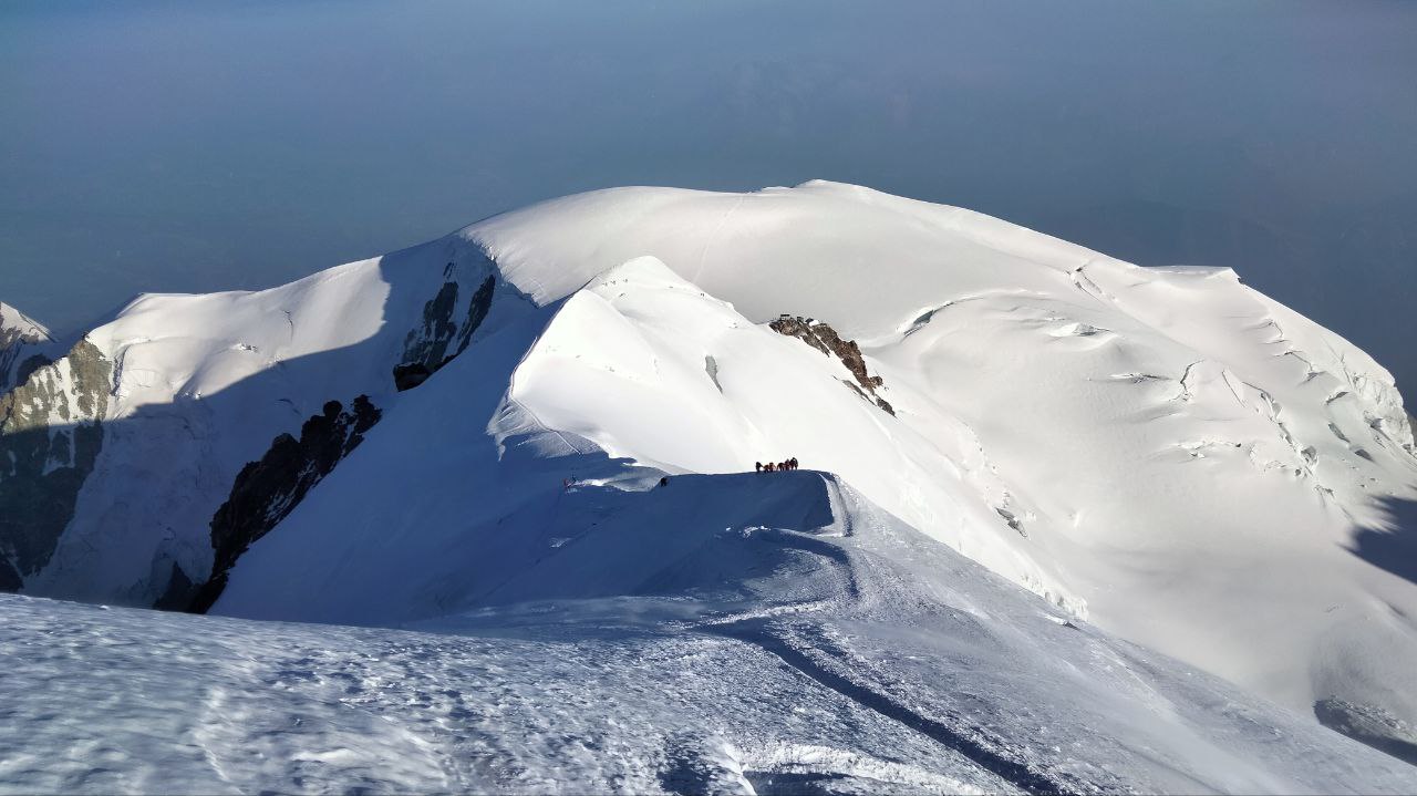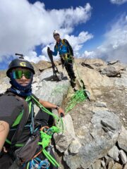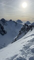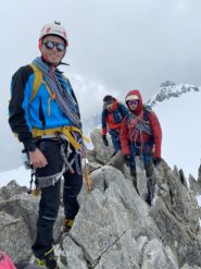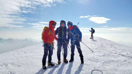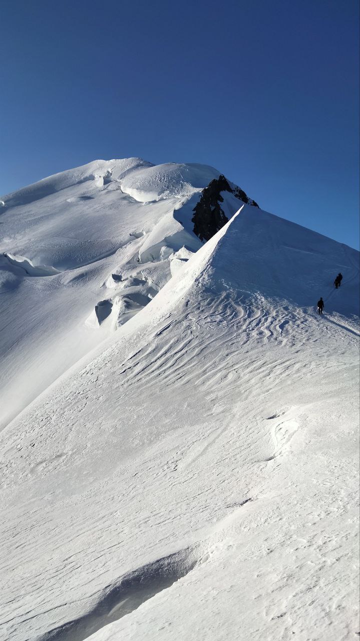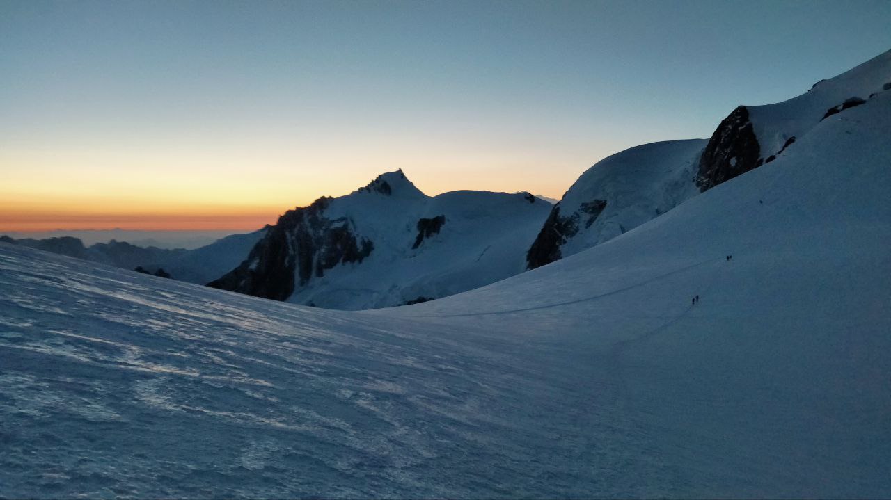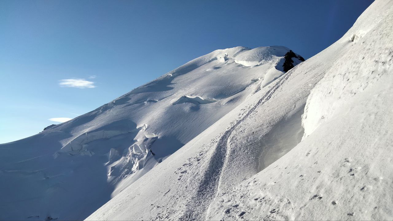 La giornata è stata abbastanza fredda quindi i ponti nei crepacci dopo il Gonella per arrivare al Col de Bionnassay erano belli stabili, il rigelo…