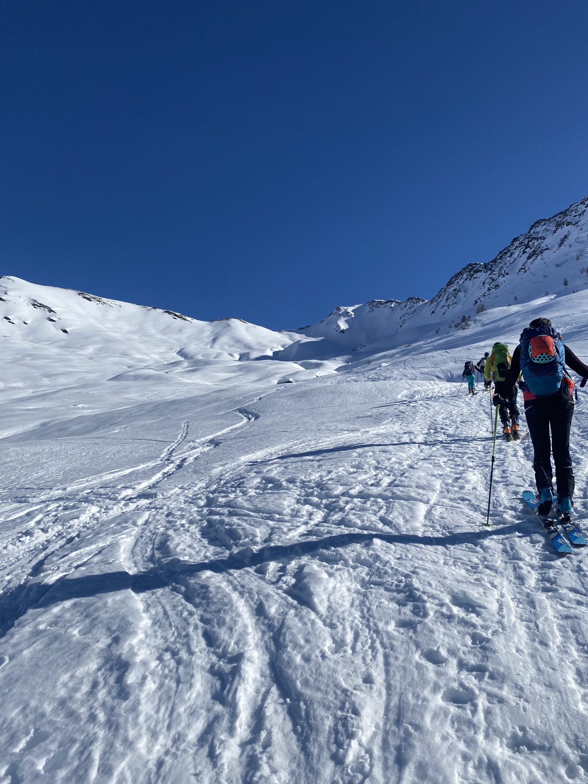 Abbiamo pernottato al Crête Sèche il sabato, per trovare la prima neve per pellare ci vogliono circa 200 metri di dislivello di portage dalla macchina,…