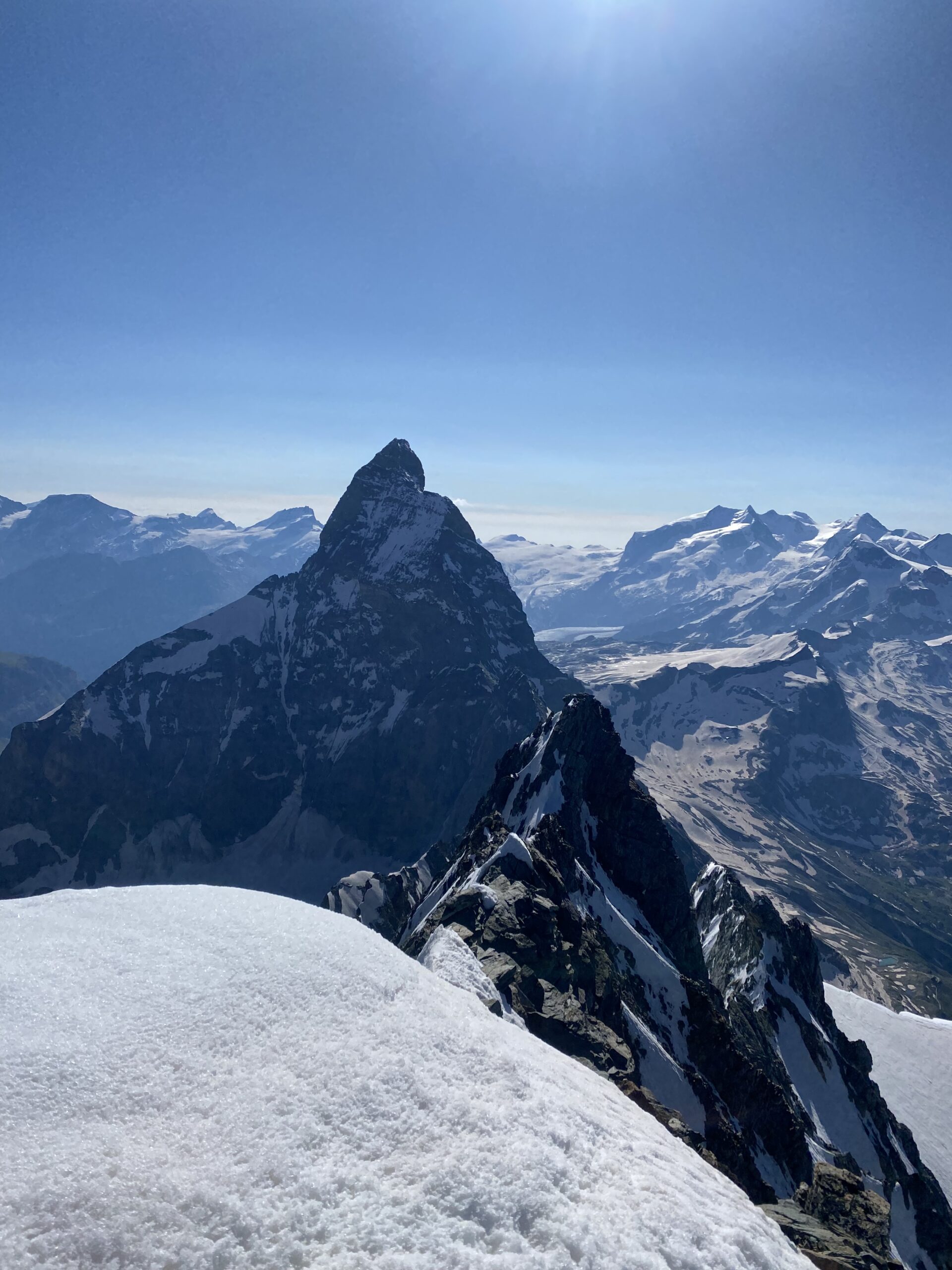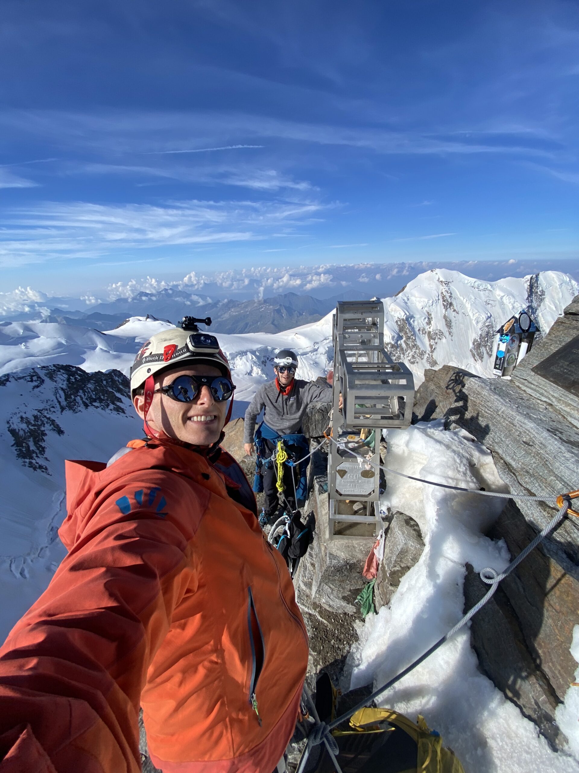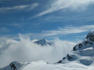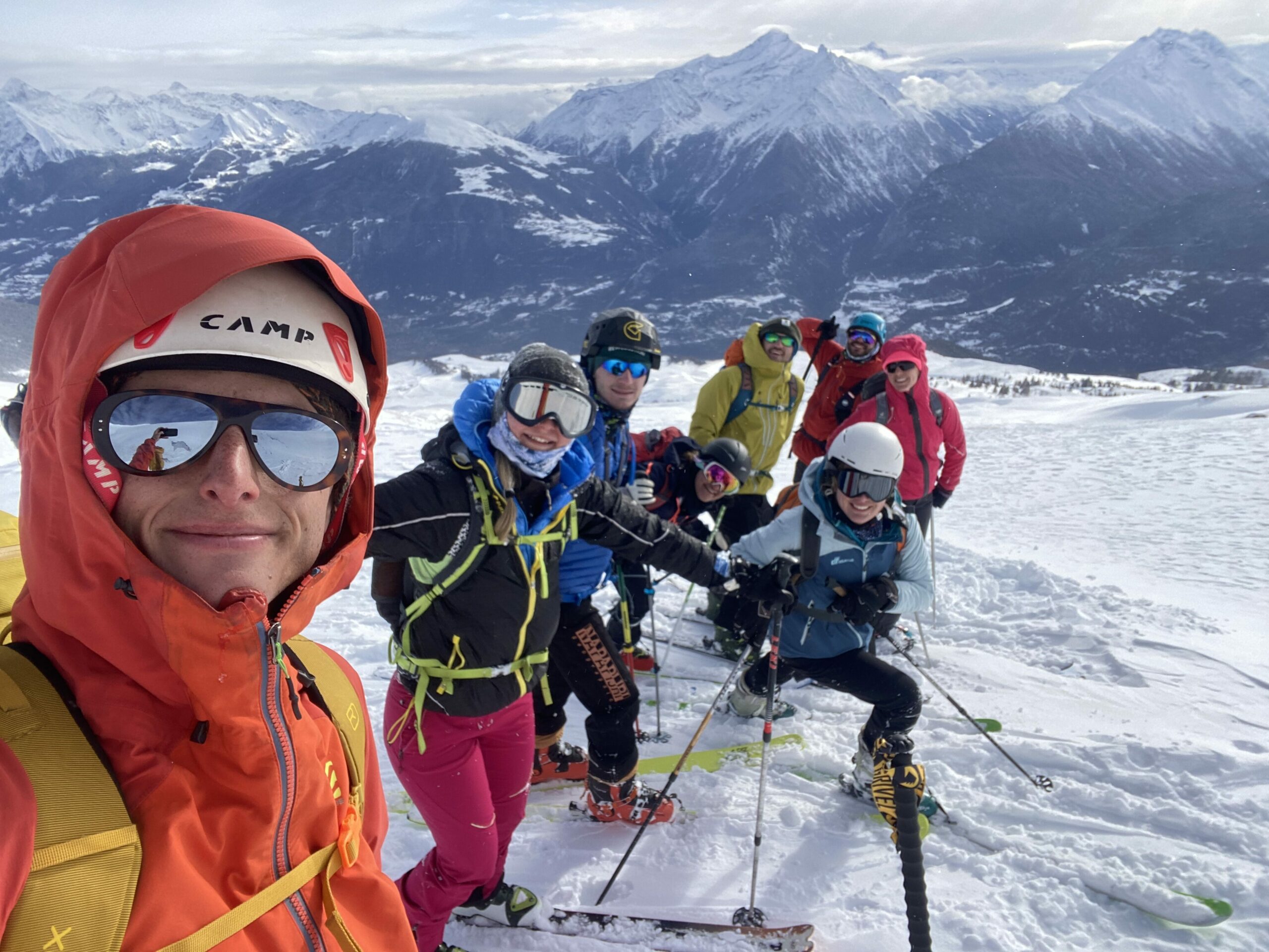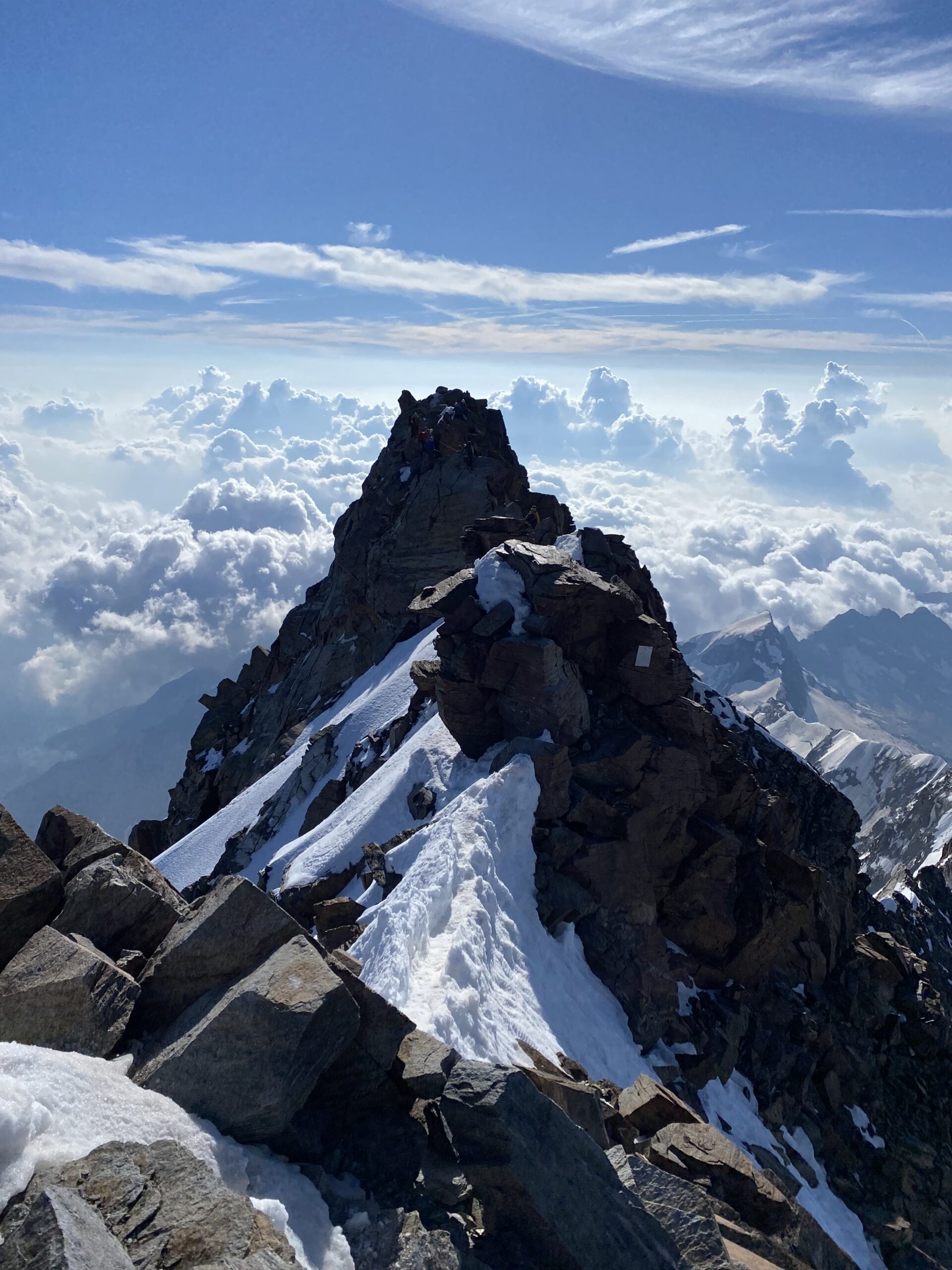 Condizioni della cresta asciutte e senza verglass, neve ben rigelata al mattino, crepacci tutti chiusi, occhio al canale con le catene scariche di pietre assicurate,…