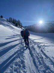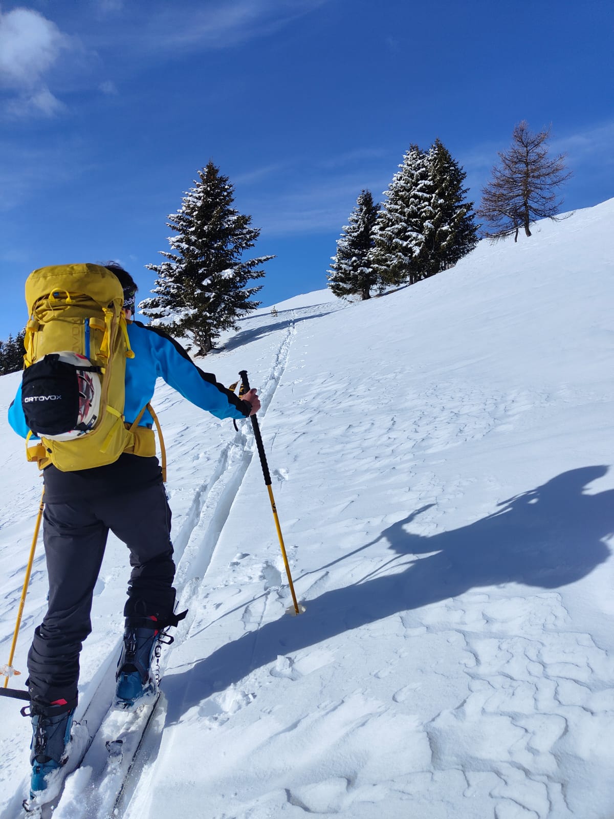 Bella è facile gita sempre su ampi e non ripidi pendii, pensavamo di trovare più neve nella parte bassa ma invece non c’è ne molta…