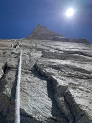 Avvicinamento molto comodo è tracciato, alla base con una doppia dal secondo tiro