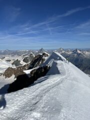 Ghiacciaio dal colle del lys tutto chiuso, qualche crepaccio dalla gnifetti in poi, condizioni della cresta ottime fatta tutta con i ramponi, giornata spaziale non…