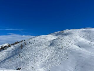 Copio Obi1897, neve insciabile. Anch'io ho girato per le piste quando mancavano 200m alla vetta, ma ho preferito evitare il fuoripista su questa neve