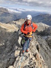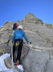 Partiti ore 4:30 dal rifugio Quintino Sella, avvicinamento all’attacco della cresta su sfasciumi. Cresta molto intuitiva da percorrere e ben segnalata con ometti e segni…