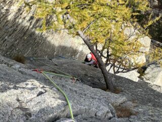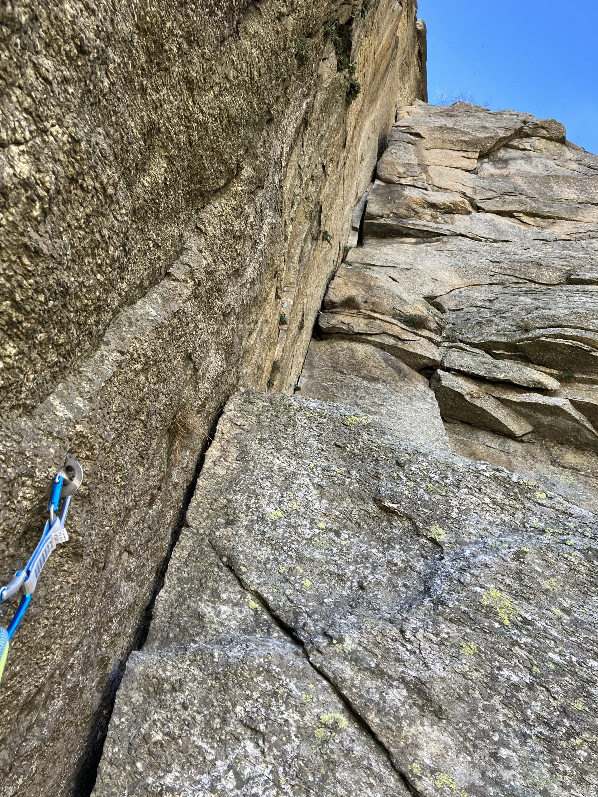 Bella via fatta prevalentemente in trad con friend dallo 0.4 al 3. Molto atletica con passaggi fisici sopratutto nella parte finale della via. Roccia ottima…