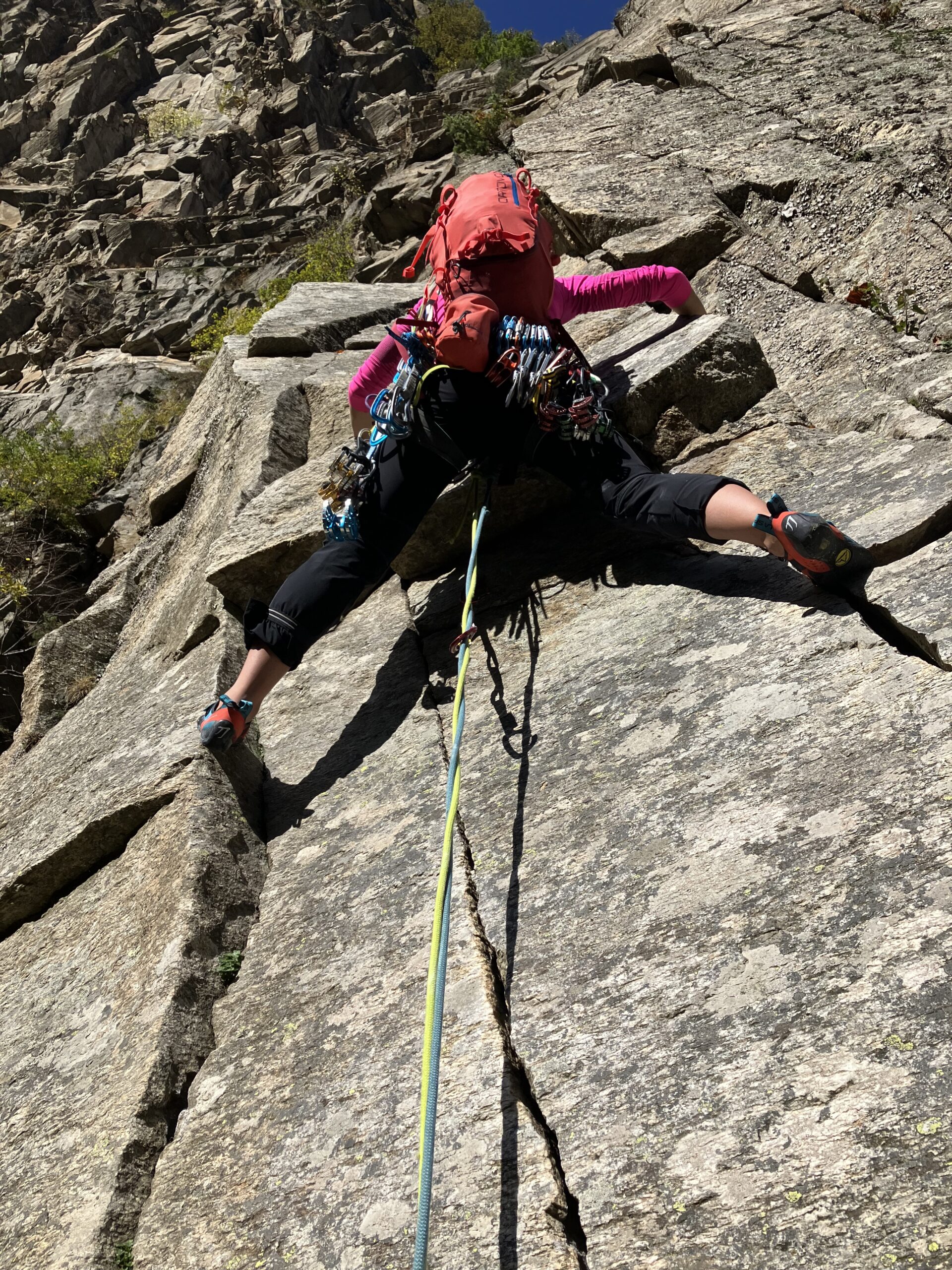 Via in ordine su roccia molto buona, non troppo esposta e molto varia. Mai difficile ma non banale. L1 con partenza nel diedro stupenda. L9…