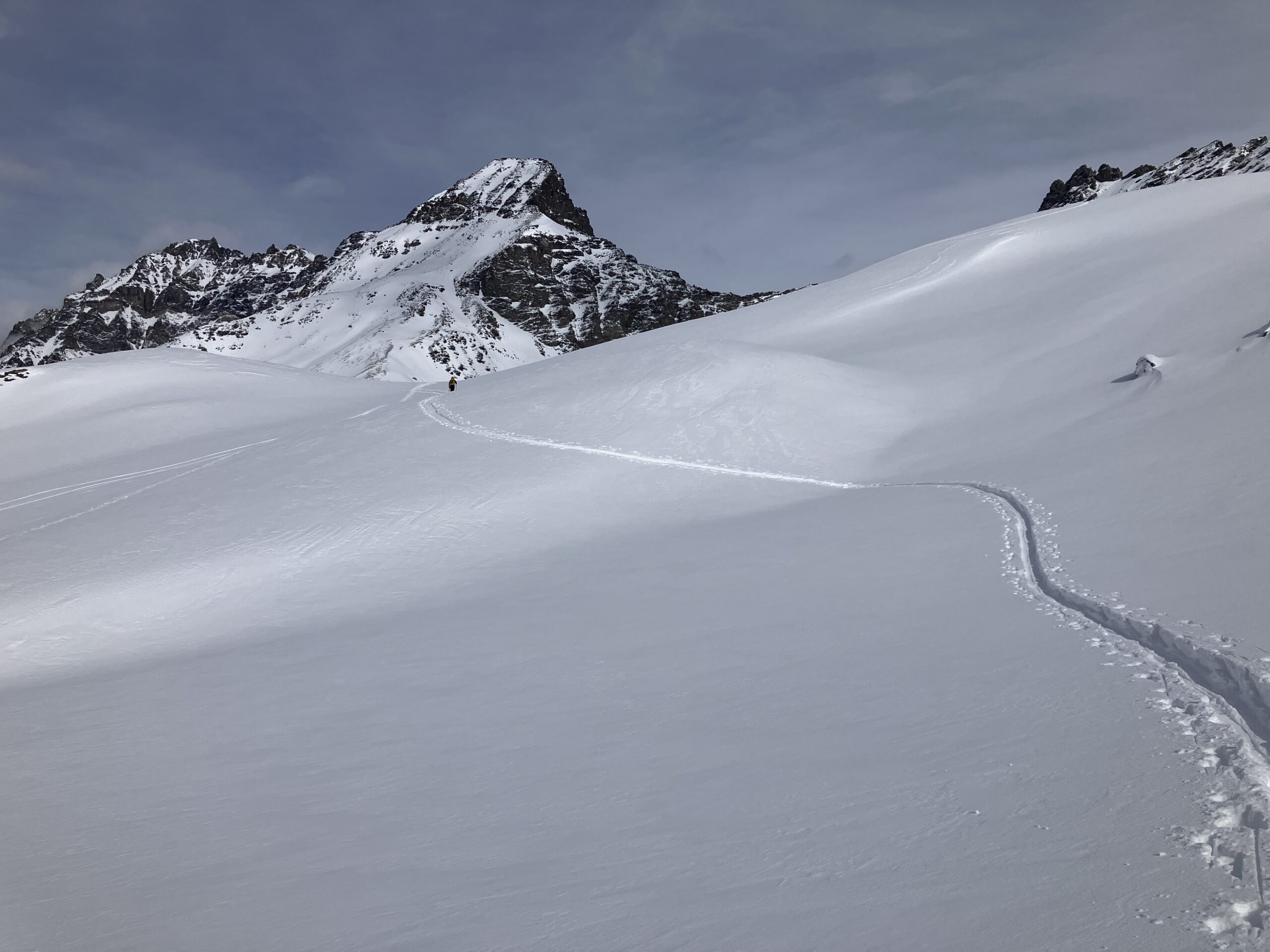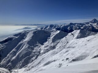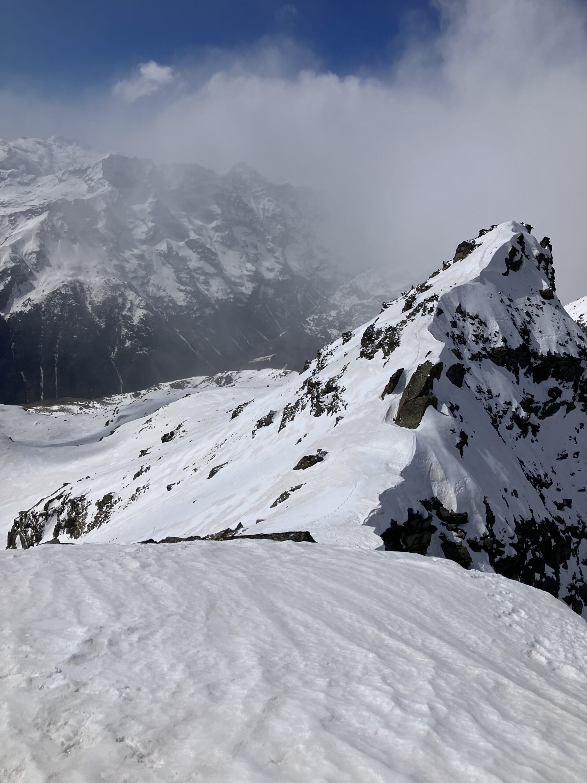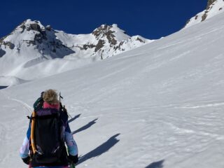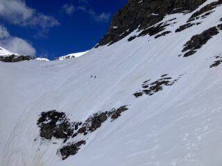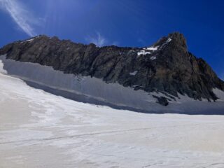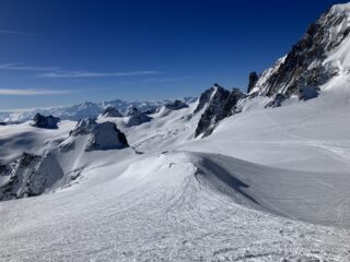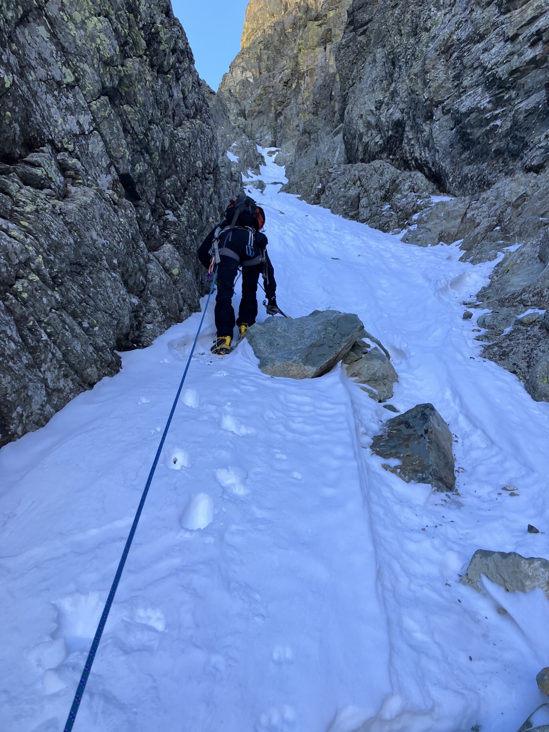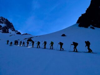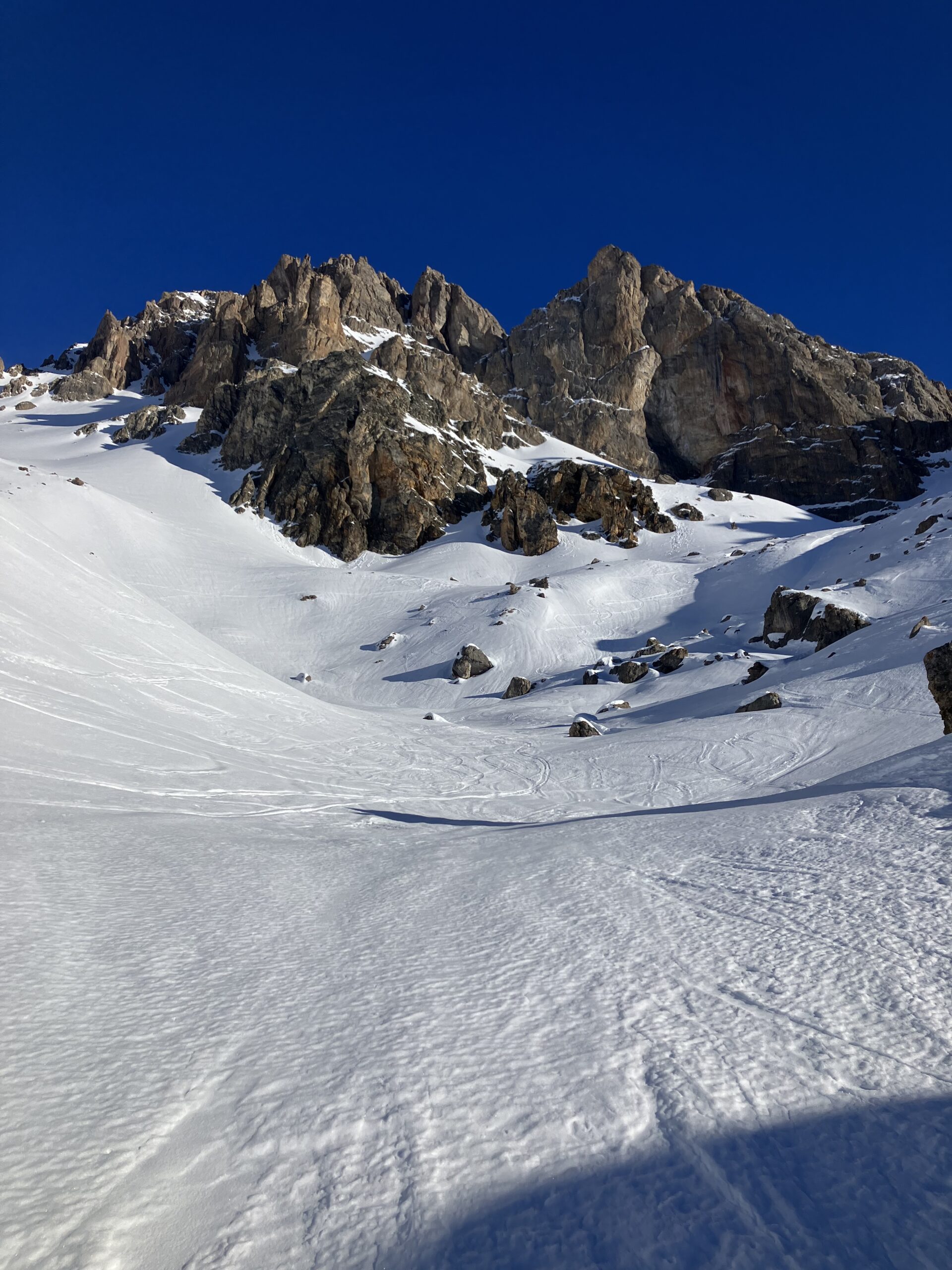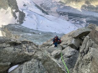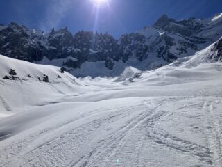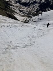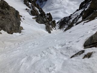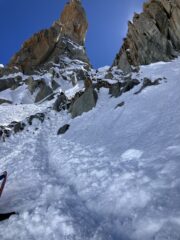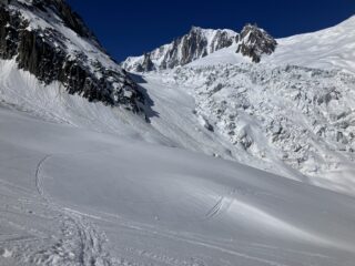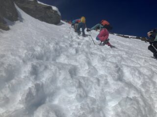 Partenza da Bonne sci ai piedi con parecchio traffico fino all’Arp Vieille e buon rigelo notturno. Saliti su crosta portante per il canalino SO con…