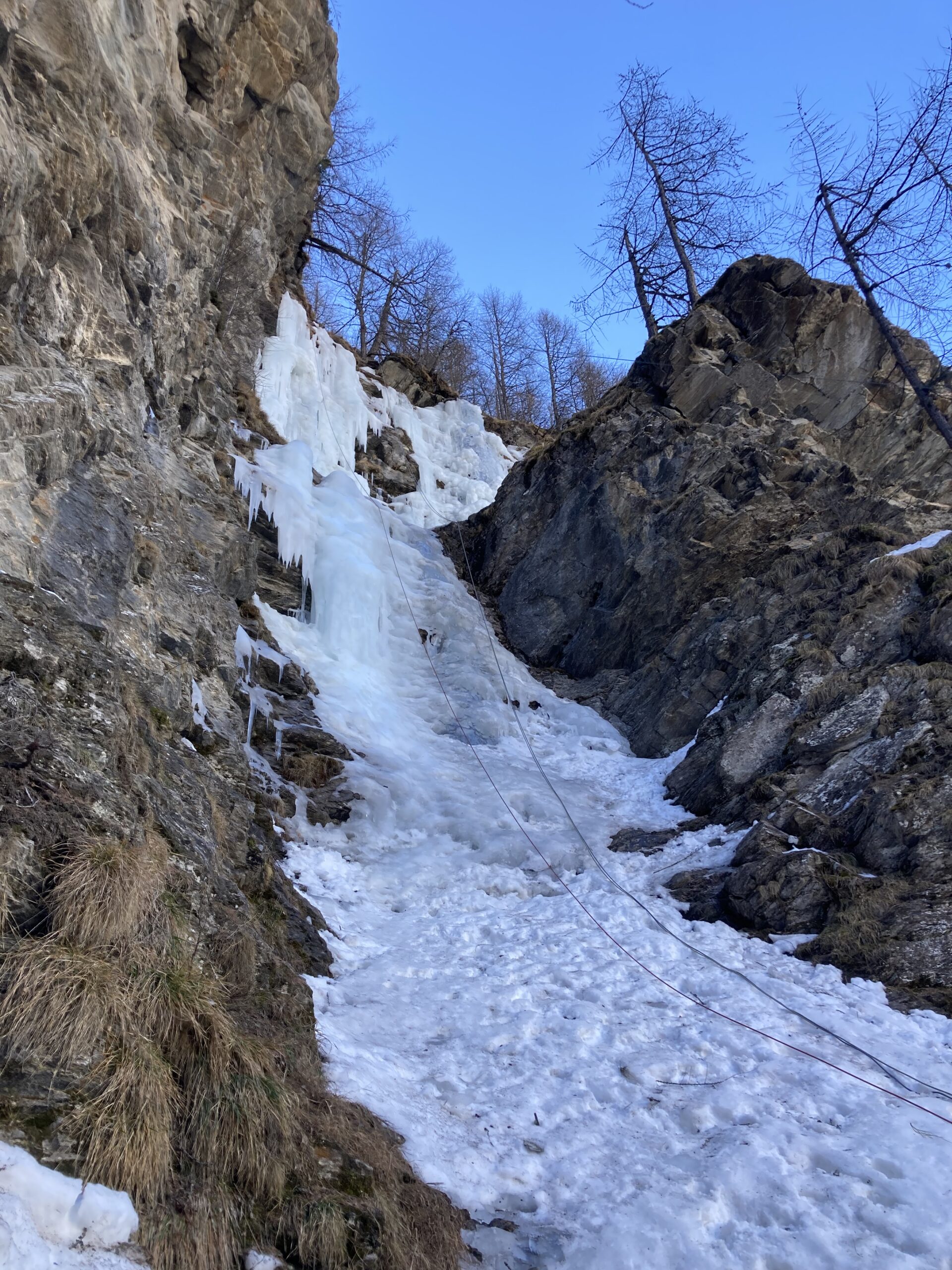 Cascata un po’ discontinua con muro interessante su L4. Ghiaccio abbastanza scarso - in formazione - scalabile in sicurezza seppur ogni tanto suona a…