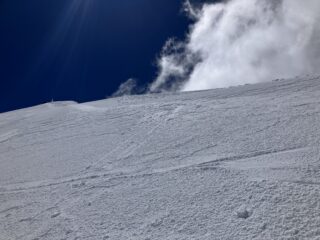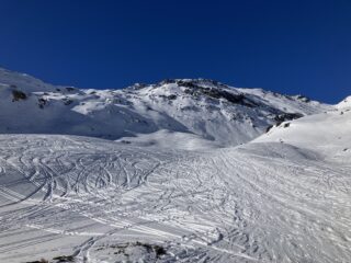 Gita chirurgica alla ricerca di fazzoletti ancora intonsi. Neve in generale buona - farinosa compatta - ma quasi tutto arato.