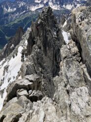 Via spettacolare, continua sul grado e sempre verticale su tacchette, quarzetti e fessurine - da non sottovalutare visti i gradi severi. Spittatura giusta dove serve…