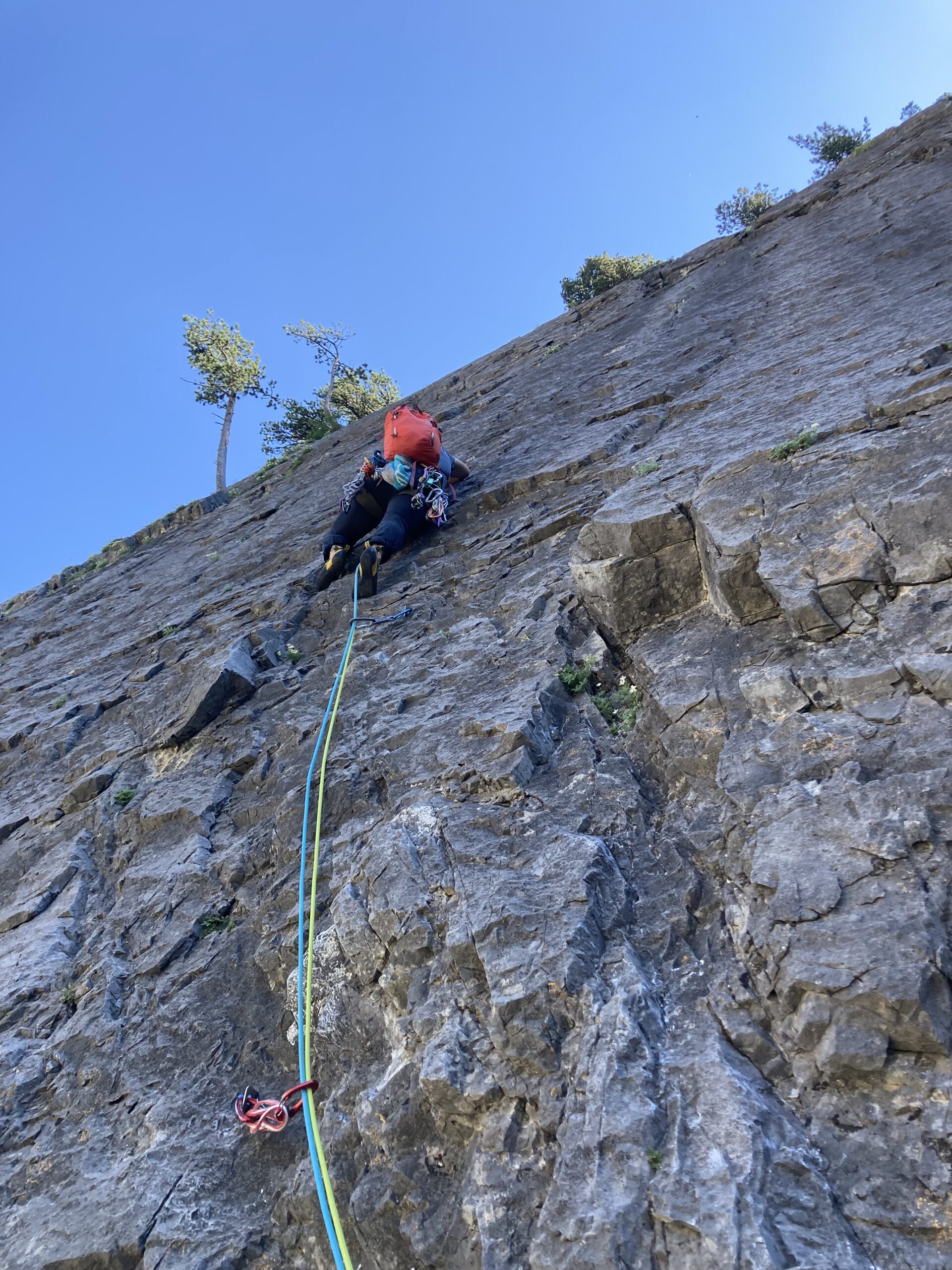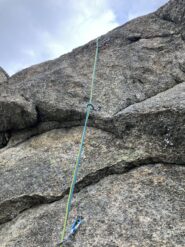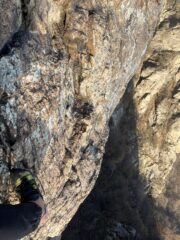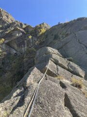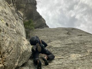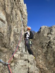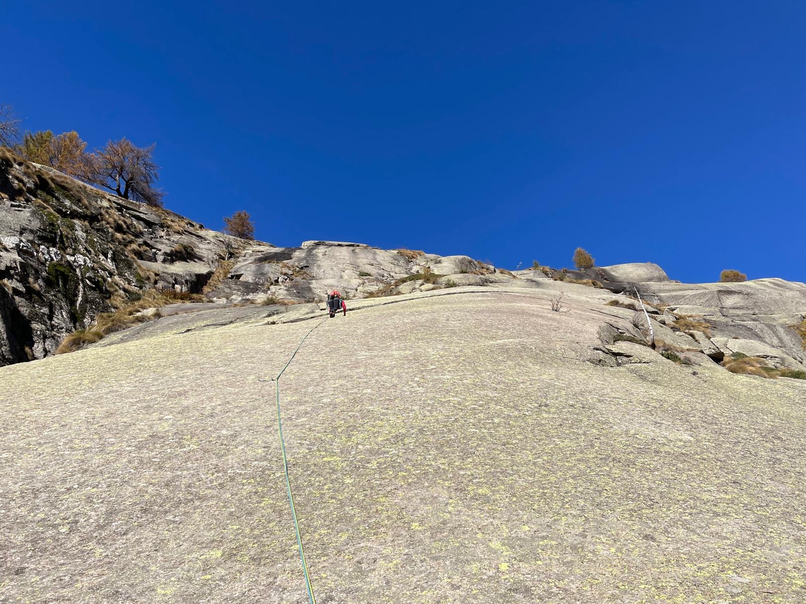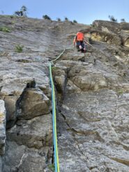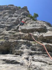 Bella via, varia e continua sul grado con primi 3 tiri più fisici ed ultimi 3 con belle spalmate su ottima roccia grippante. Per l’attacco…