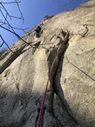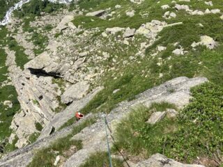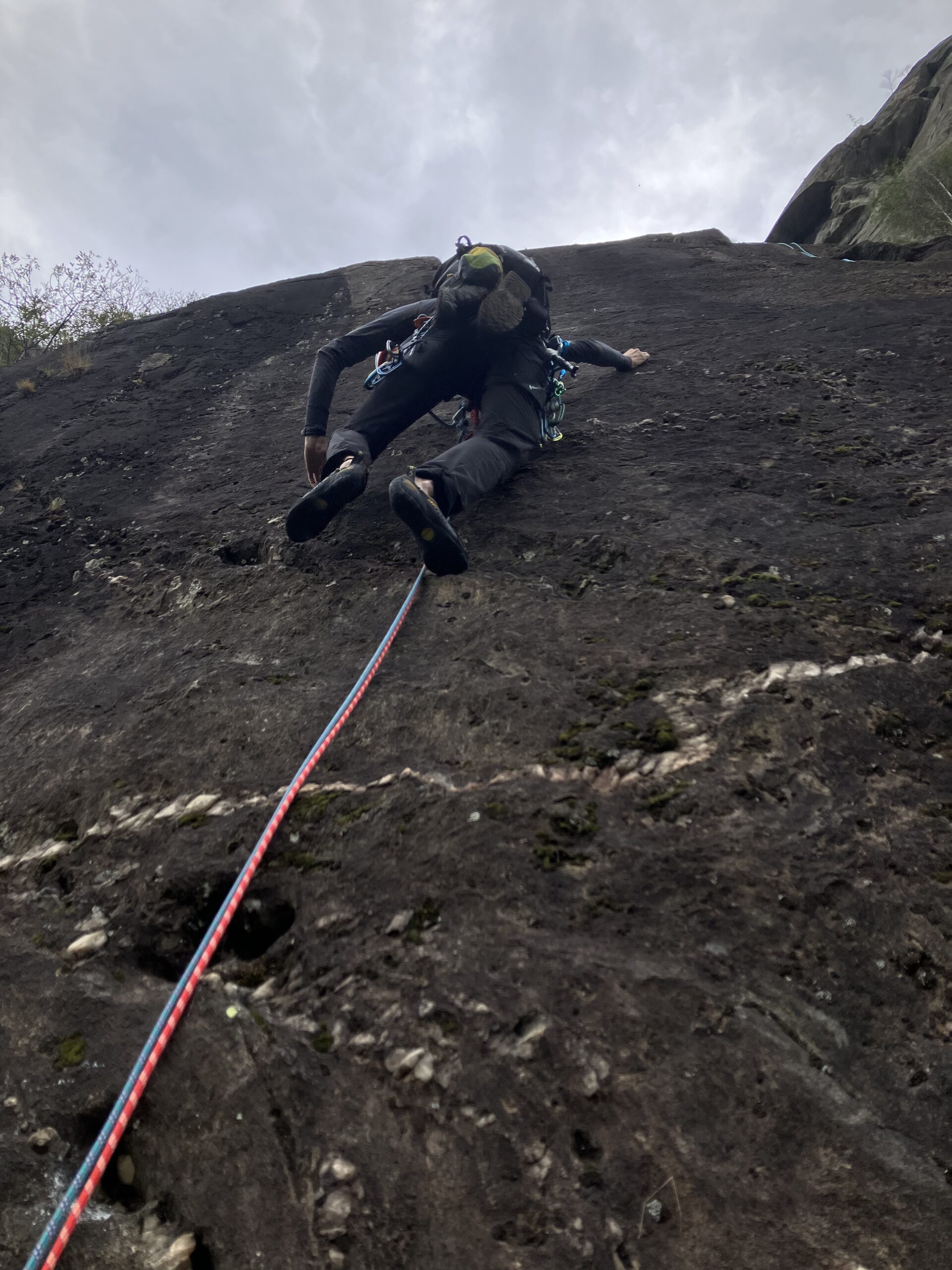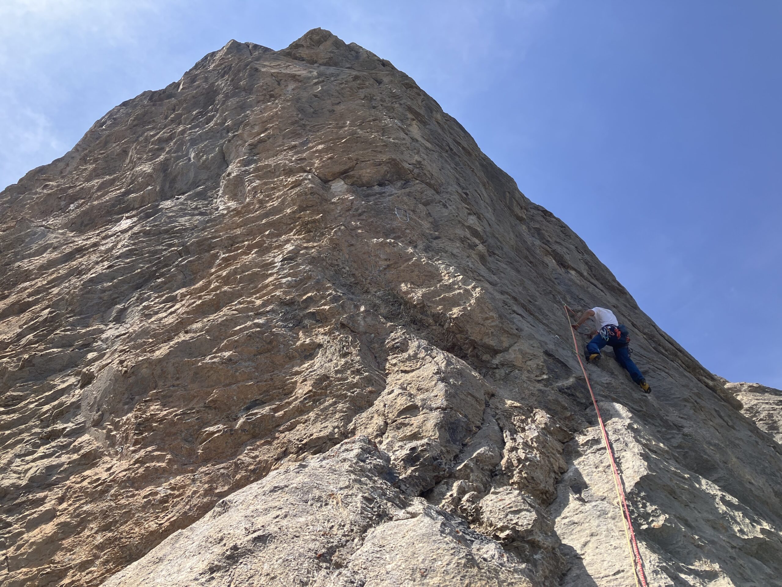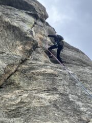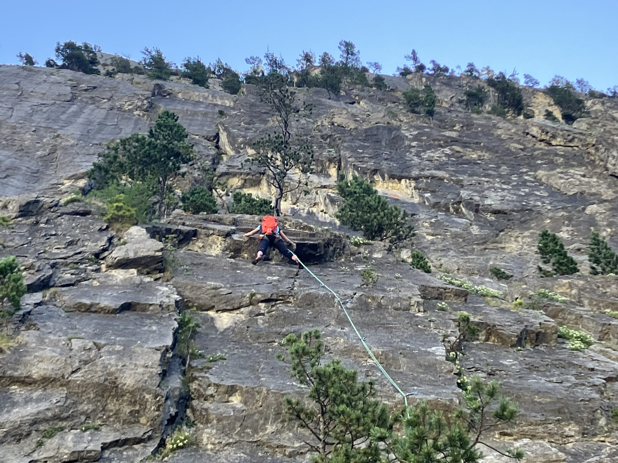 Bella via, varia e continua sul grado con primi 3 tiri più fisici ed ultimi 3 con belle spalmate su ottima roccia grippante. Per l’attacco…