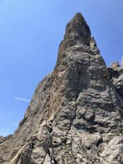 Gran bella via - da leggere immaginando di essere negli anni 60 - che sfrutta appieno le debolezze del torrione con arrampicata rude tra fessure,…