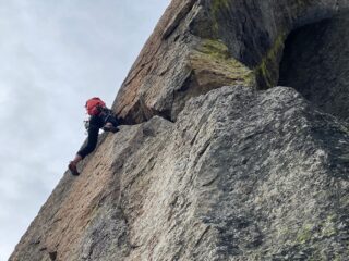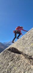 Via spettacolare con arrampicata varia (fisica e tecnica) su granito spaziale ed esposizione assicurata fino a L3. Spittatura minimal che dà sicurezza sui passi chiave…