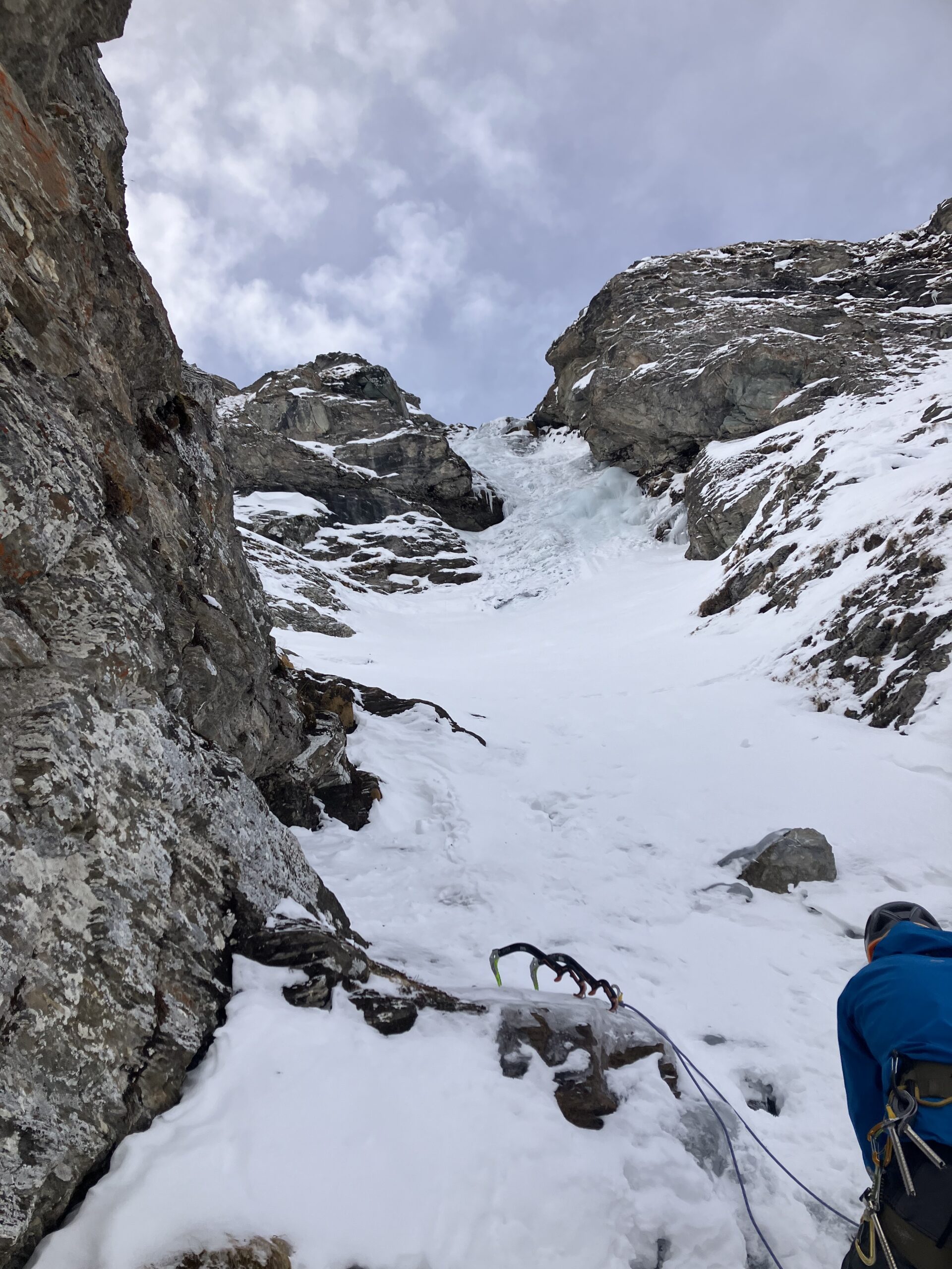 Goulotte molto magra con ghiaccio duro e spaccoso e -11 alla macchina ore 8:30. L1 con ghiaccio un po al limite ed uscita delicata di…
