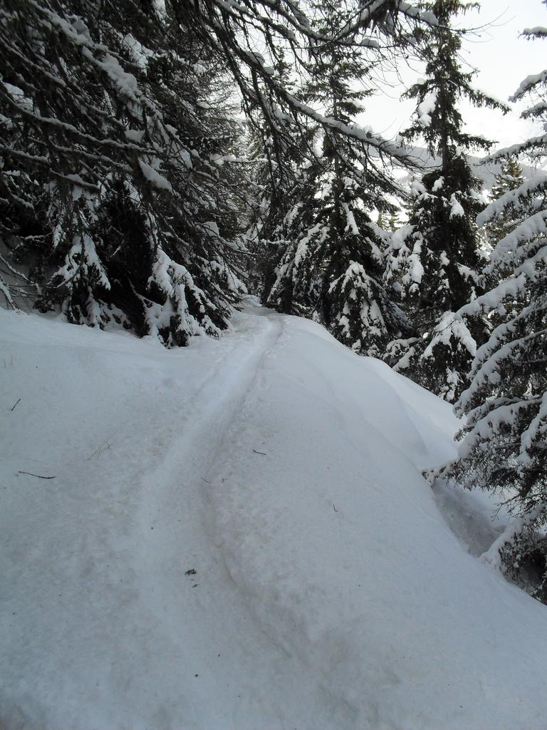 | vipi5547 | la partenza da Les Fleurs | vipi5547 | la poderale nel bosco | vipi5547 | il traverso su dorsale ripida | vipi5547 | panorama dell'ambiente | vipi5547 | l'incontro con Luca,l'apripista