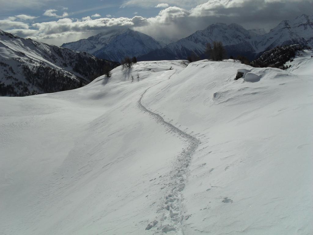 | vipi5547 | in salita nel bosco ,sullo sfondo il Monte Bianco | vipi5547 | arrivo all'alpe Arpilles | vipi5547 | riprende la salita tracciando un bel solco nel bosco | vipi5547 | l'arrivo al colle du Bard | vipi5547 | ormai vicini alla meta | vipi5547 | ritorno sulla nostra traccia | vipi5547 | scorcio panoramico durante la discesa