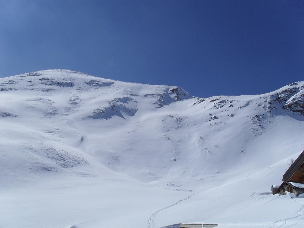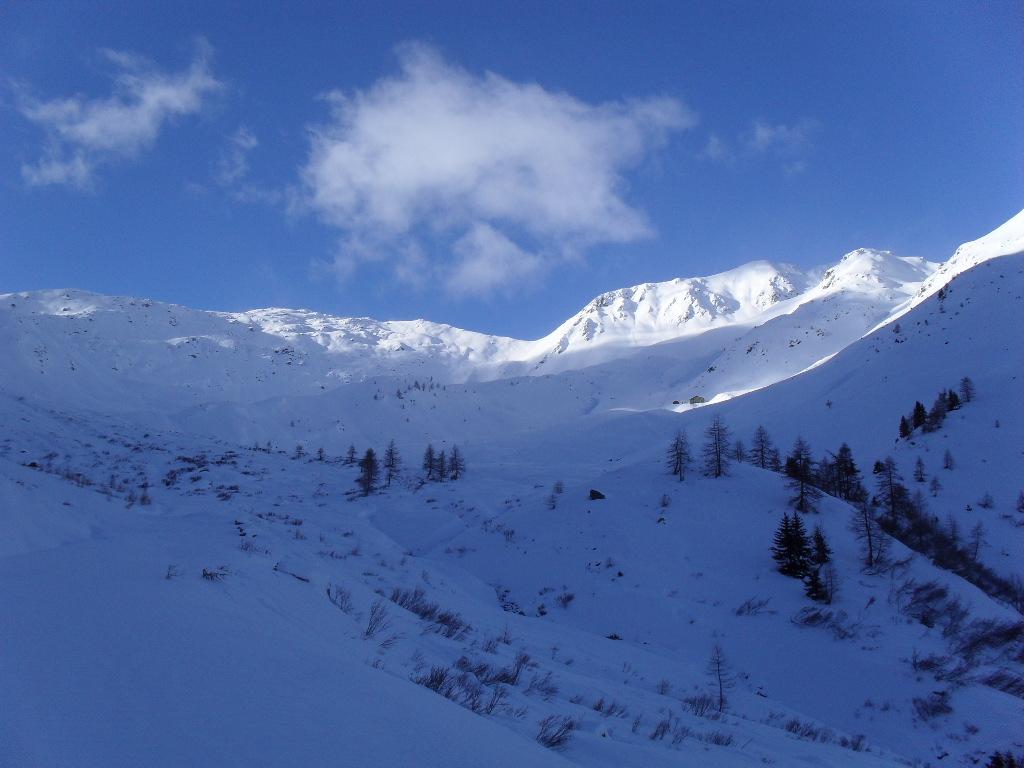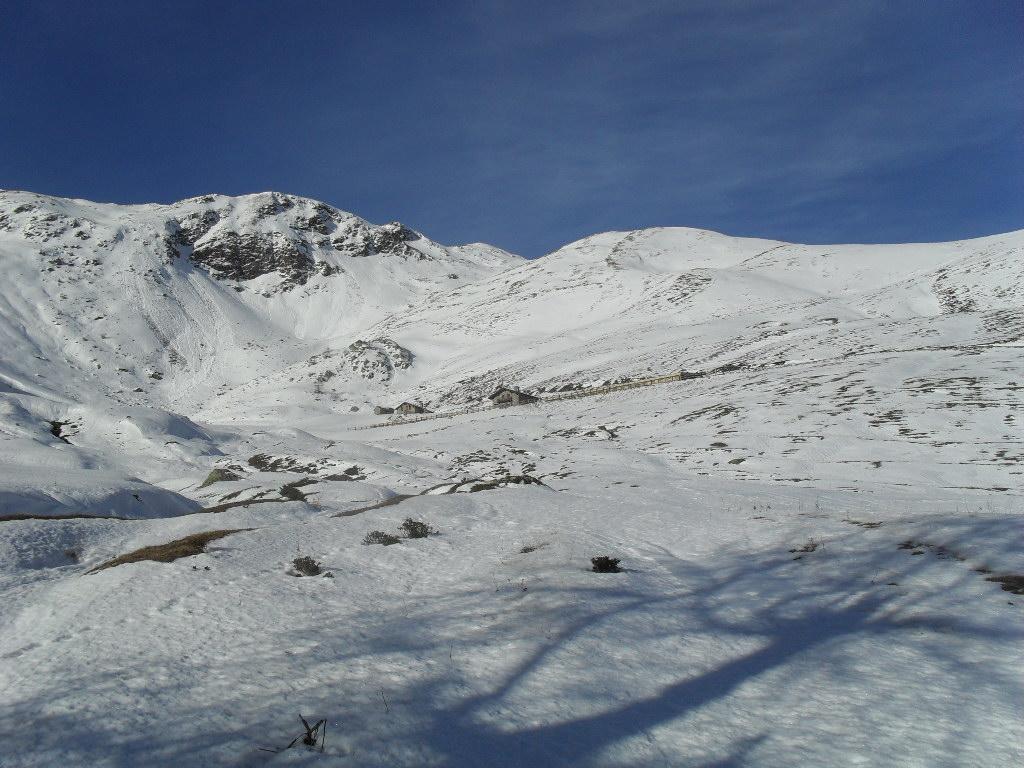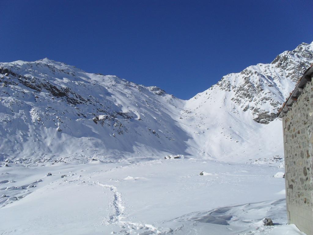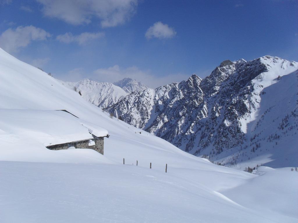 | vipi5547 | la Grand Rochere e la Bonale' viste dall'alpeggio | vipi5547 | panorama dell'ambiente attorno all'alpe Bonale' | vipi5547 | l'alpeggio Bonale' coperto dalla neve,sulla destra i dossi di rientro verso l'alpeggio Rantin | vipi5547 | il canale slavinato
