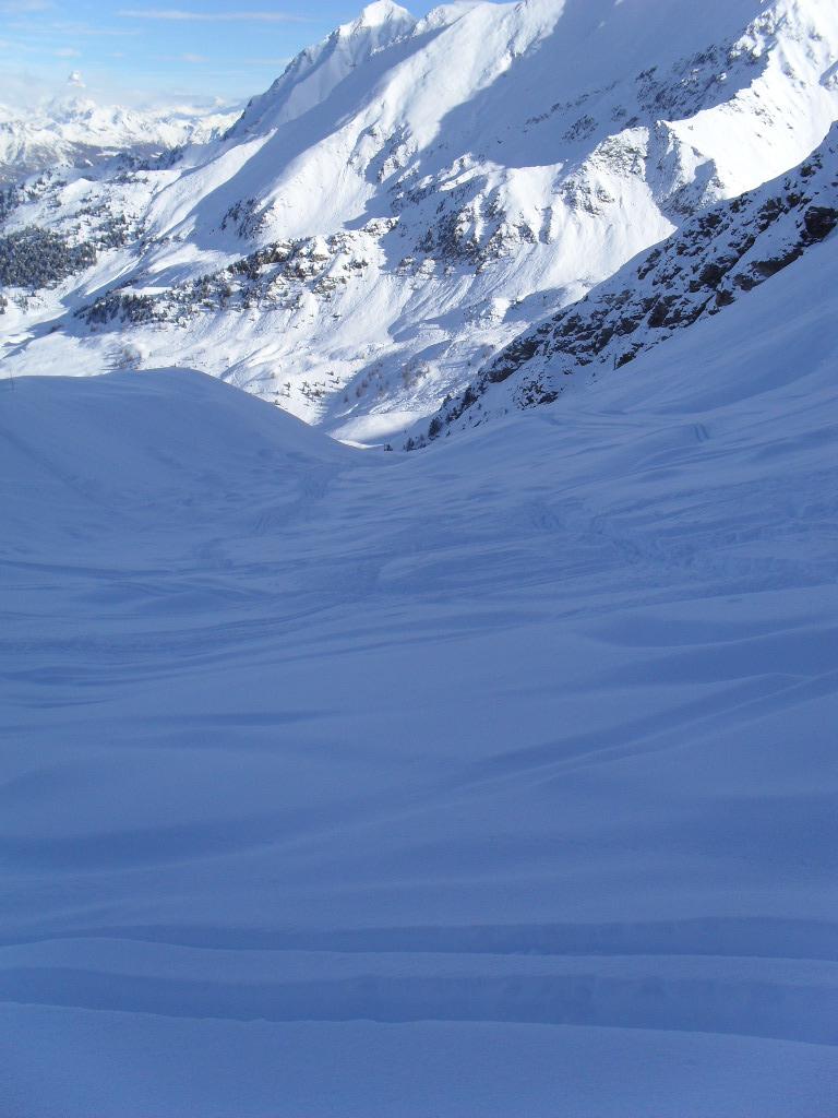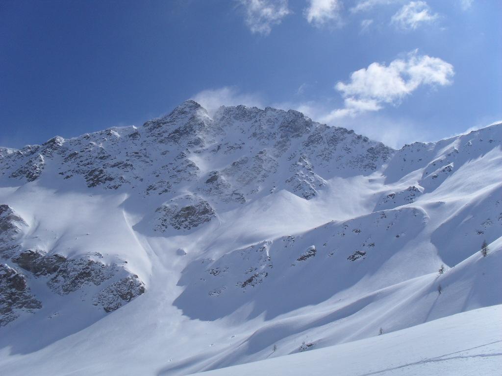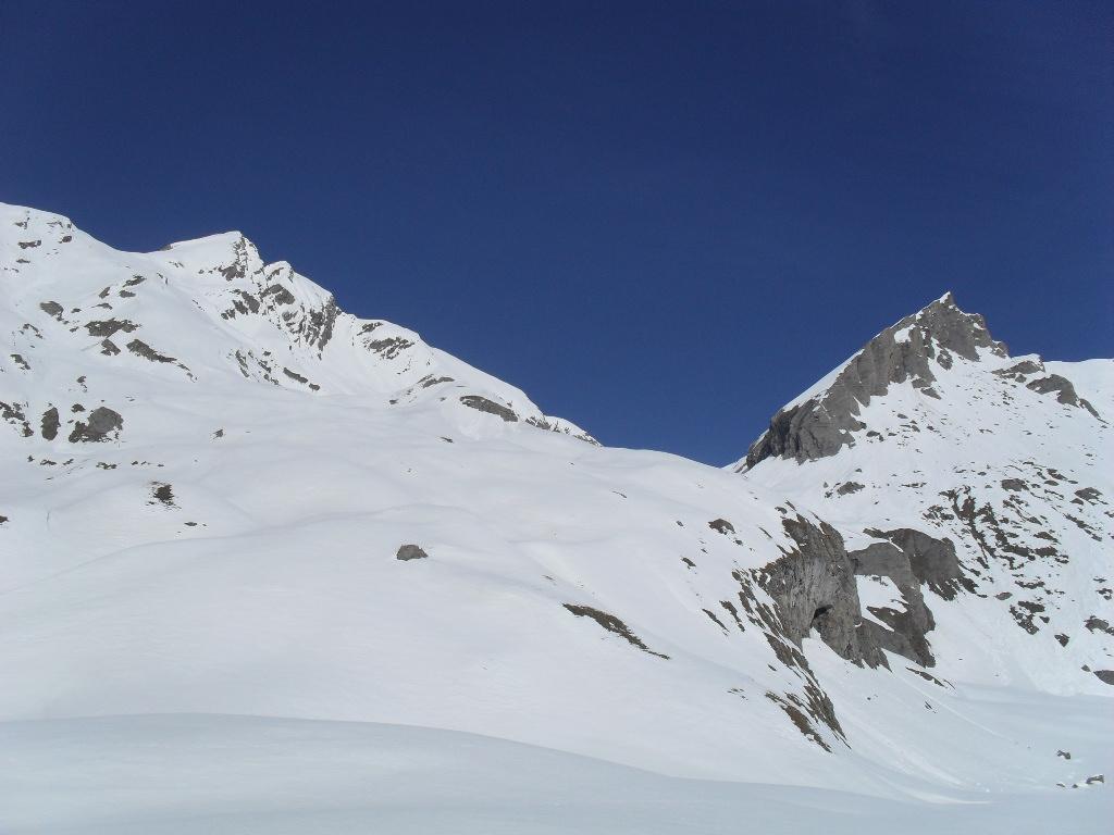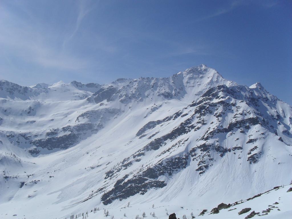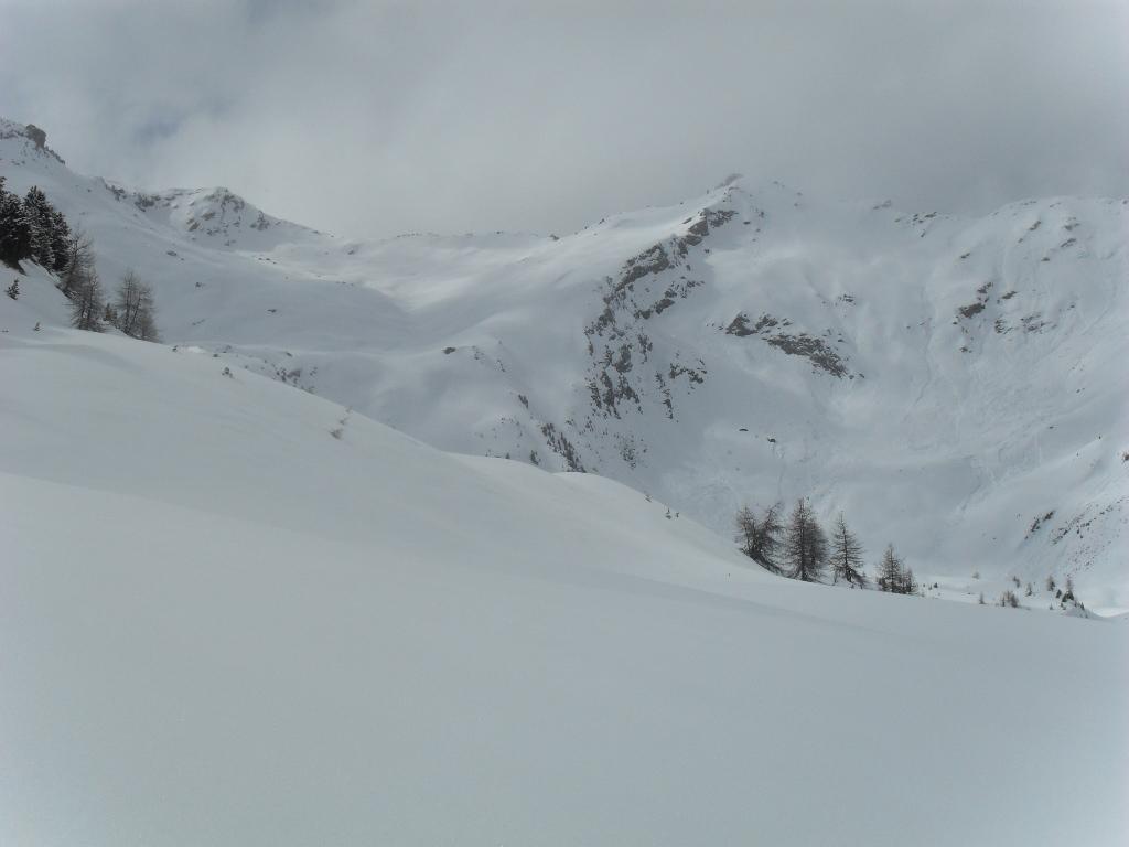 | vipi5547 | la Grand Rochere e la Bonale' viste dall'alpeggio | vipi5547 | panorama dell'ambiente attorno all'alpe Bonale' | vipi5547 | l'alpeggio Bonale' coperto dalla neve,sulla destra i dossi di rientro verso l'alpeggio Rantin | vipi5547 | il canale slavinato