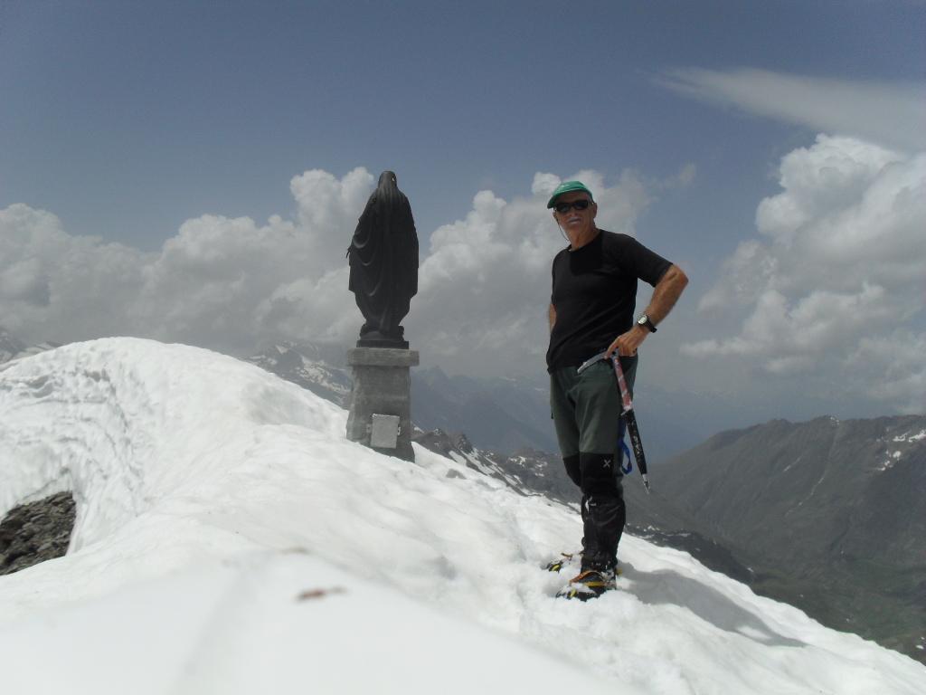 | vipi5547 | 8,30 la partenza da Promiod | vipi5547 | l'arrivo all'alpeggio piu' alto | vipi5547 | nel bosco | vipi5547 | inizia la cresta | vipi5547 | il percorso fatto per raggiungere la cresta | vipi5547 | il percorso che rimane,si intravede la statua della Madonna | vipi5547 | all'anticima dove ho messo i ramponi e preso la picca,traccia da fare | vipi5547 | in vetta la statua della Madonna | vipi5547 | autoscatto ai piedi della statua | vipi5547 | panorama a 360 gradi