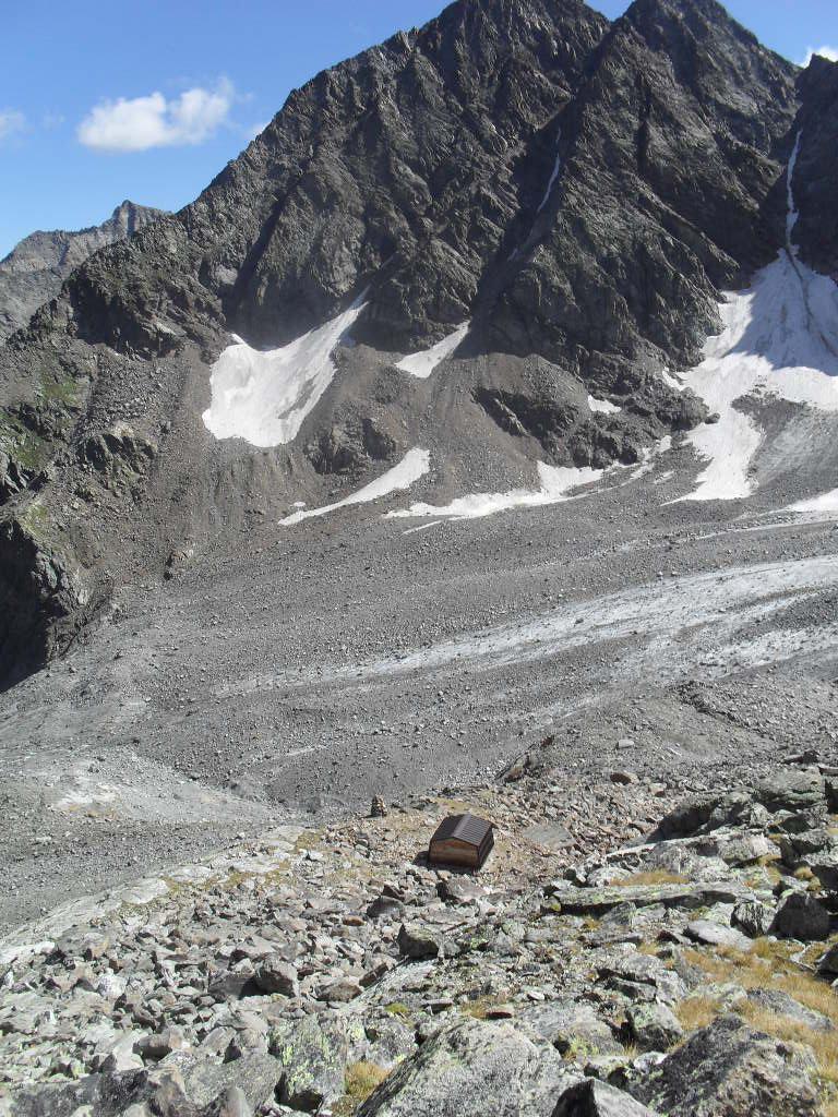 | vipi5547 | Stambecco sotto le rocce a meta' percorso | vipi5547 | l'ambiente dopo due ore e trenta di cammino | vipi5547 | il Bivacco Antoldi-Malvezzi | vipi5547 | il ghiacciaio in estinzione sotto il Bivacco | vipi5547 | vista sulla Valeille e sul percorso effettuato | vipi5547 | l'ambiente severo che circonda il Bivacco | vipi5547 | sotto il colletto dell'Ondezzana a quota 3100 | vipi5547 | il bivacco visto dall'alto