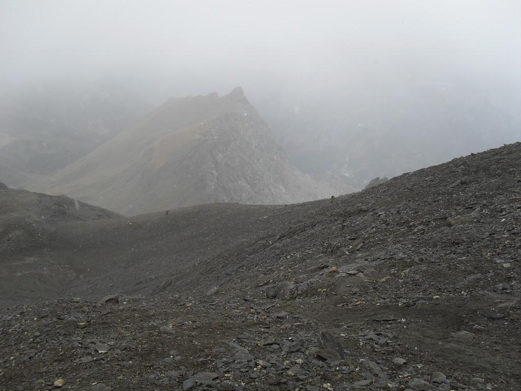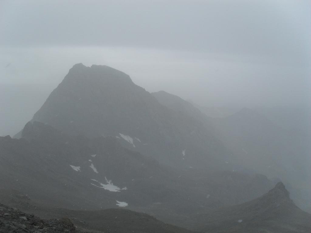 | vipi5547 | il tratto finale | vipi5547 | autoscatto in punta | vipi5547 | la poca visibilita' dell'ambiente | vipi5547 | i due escursionisti stanno arrivando in vetta | vipi5547 | una apertura sul percorso di salita | vipi5547 | il Tournalin avvolto nel maltempo