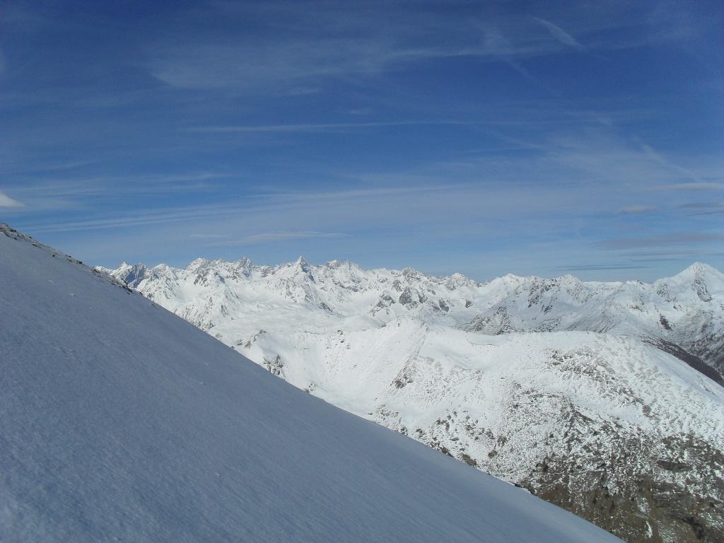 | vipi5547 | la mia traccia di salita | vipi5547 | la punta ed il tratto ancora da tracciare | vipi5547 | autoscatto in punta | vipi5547 | panorami dalla punta | vipi5547 | panorami dalla punta | vipi5547 | la mia firma di discesa all'inizio del canalone di Arpilles | vipi5547 | panorama sulla Valdigne