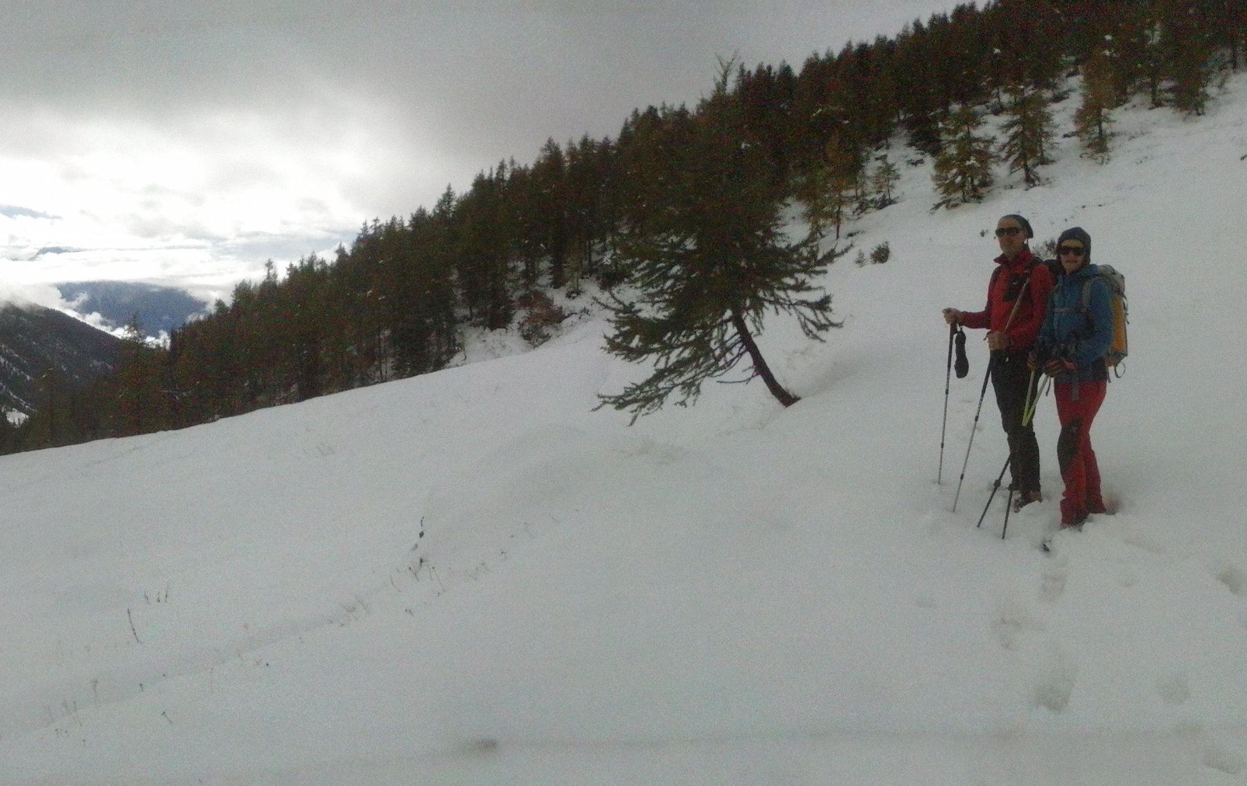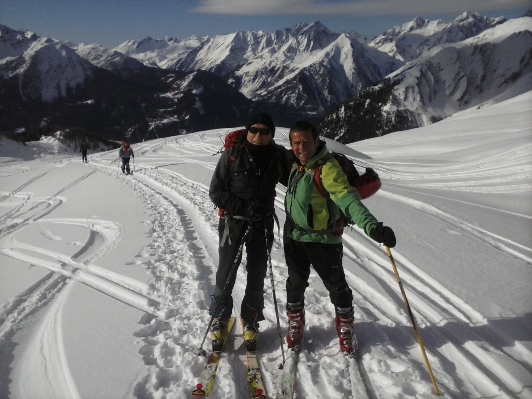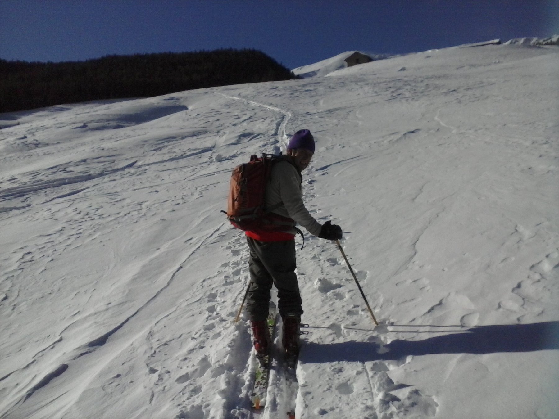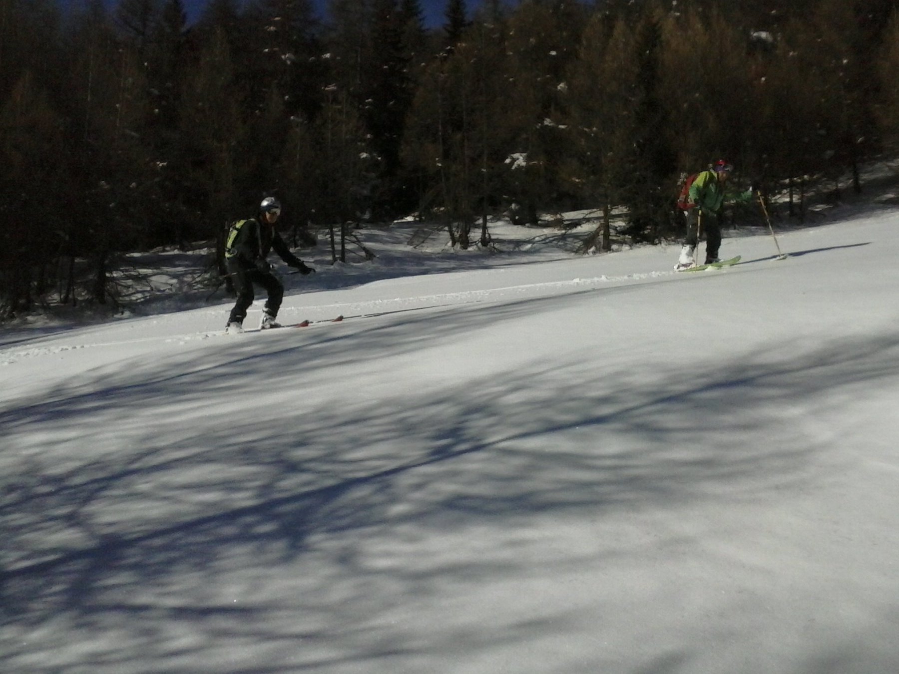 | vipi5547 | in salita sopra la baita Les Ors.. | vipi5547 | un omaggio con i più vivi complimenti all'ottantenne (in nero) incontrato in zona,abbiamo dunque ancora un pò di anni disponibili... | vipi5547 | primo tratto del ripido canale di discesa in neve compattata alternata a polvere.. | vipi5547 | Luciano in action nella parte migliore con neve intonsa da 5 stelle o più..