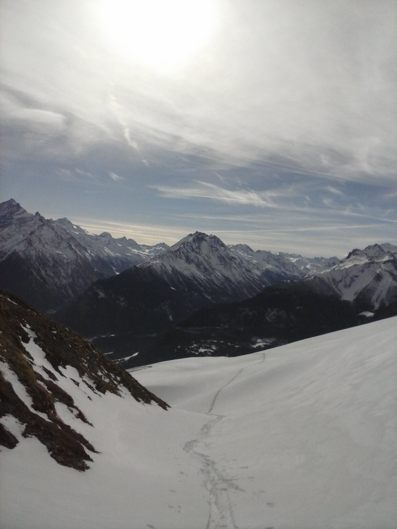 | vipi5547 | l'ambiente di salita senza tracce... | vipi5547 | uno sguardo al Mont du Mont...sullo sfondo il Ruitor.. | vipi5547 | ultimi pendii ripidi di salita.. | vipi5547 | quasi al colle.. panorama impagabile... | vipi5547 | prime belle curve in discesa su neve intonsa... | vipi5547 | continuano le belle curve nel tratto mediano e fino al pianoro..