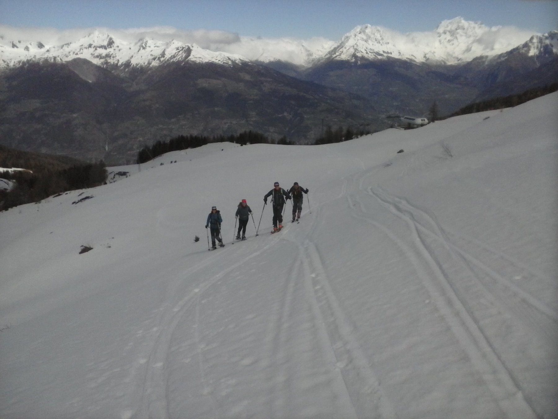| vipi5547 | la nostra meta si avvicina.. | vipi5547 | in discesa sotto la cornice del colletto... | vipi5547 | sempre più in basso sfruttando le lingue di neve primaverile... | vipi5547 | panorama dall'ultimo alpeggio sopra Vetan...