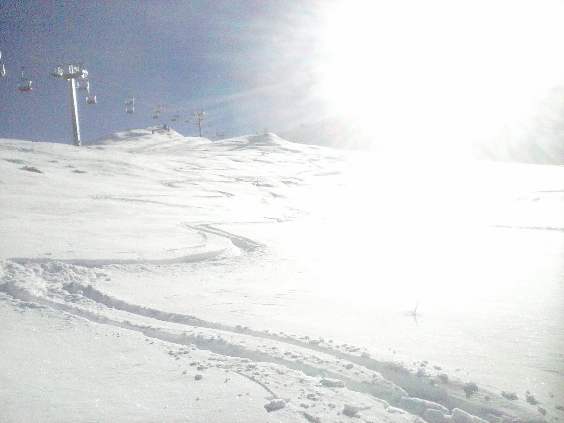 | vipi5547 | l'arrivo alle baite con forte vento gelido e l'inizio delle aperture | vipi5547 | iniziata la discesa col cielo soleggiato ma vento sempre forte... | vipi5547 | sempre belle curve su neve fresca con fondo compatto...