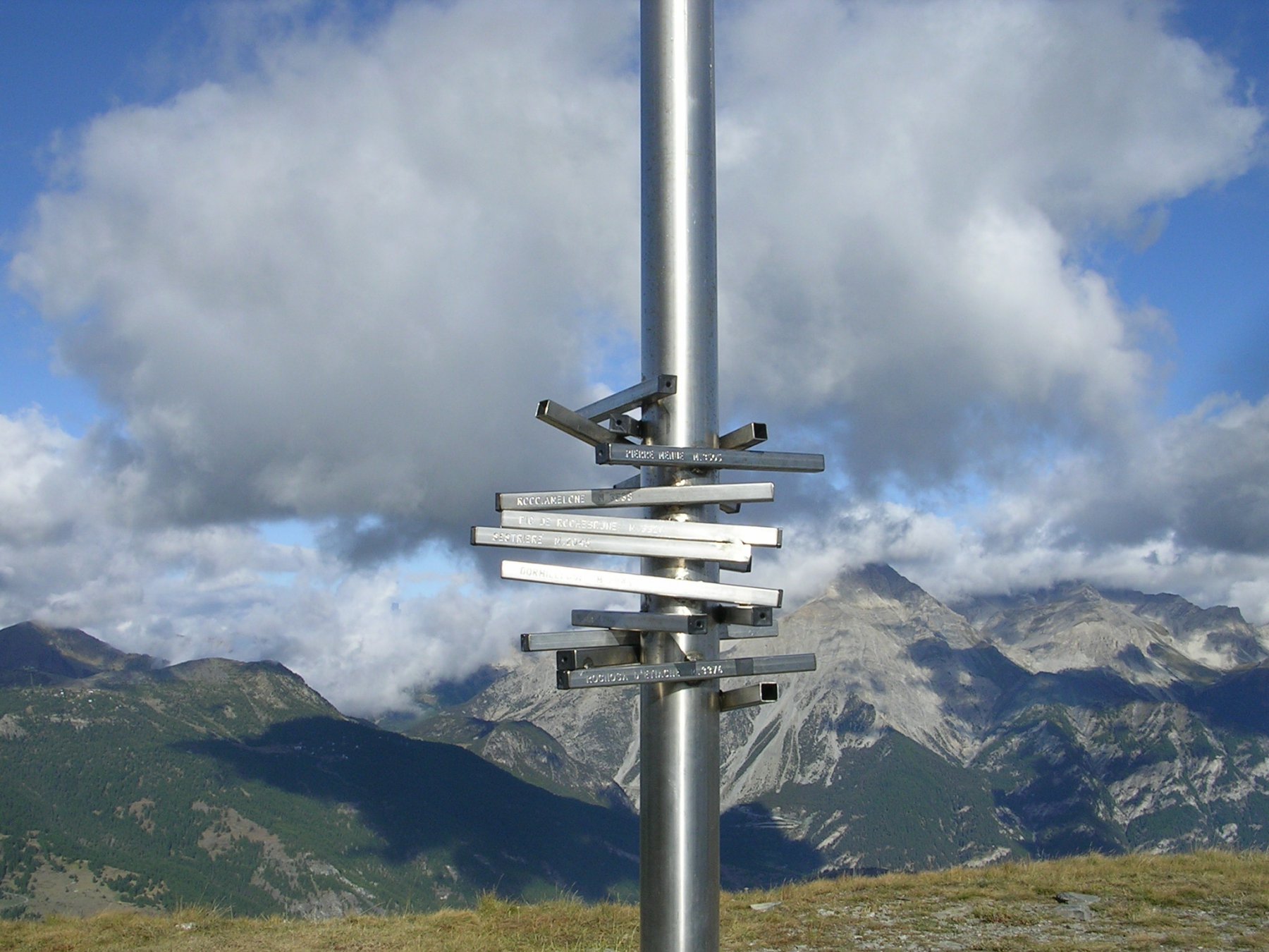 | vittorio-balbiano | Thures e lo Chaberton | vittorio-balbiano | Il sentiero nel bosco | vittorio-balbiano | Sestriere dalla cima | vittorio-balbiano | Gli indicatori delle montagne visibili.