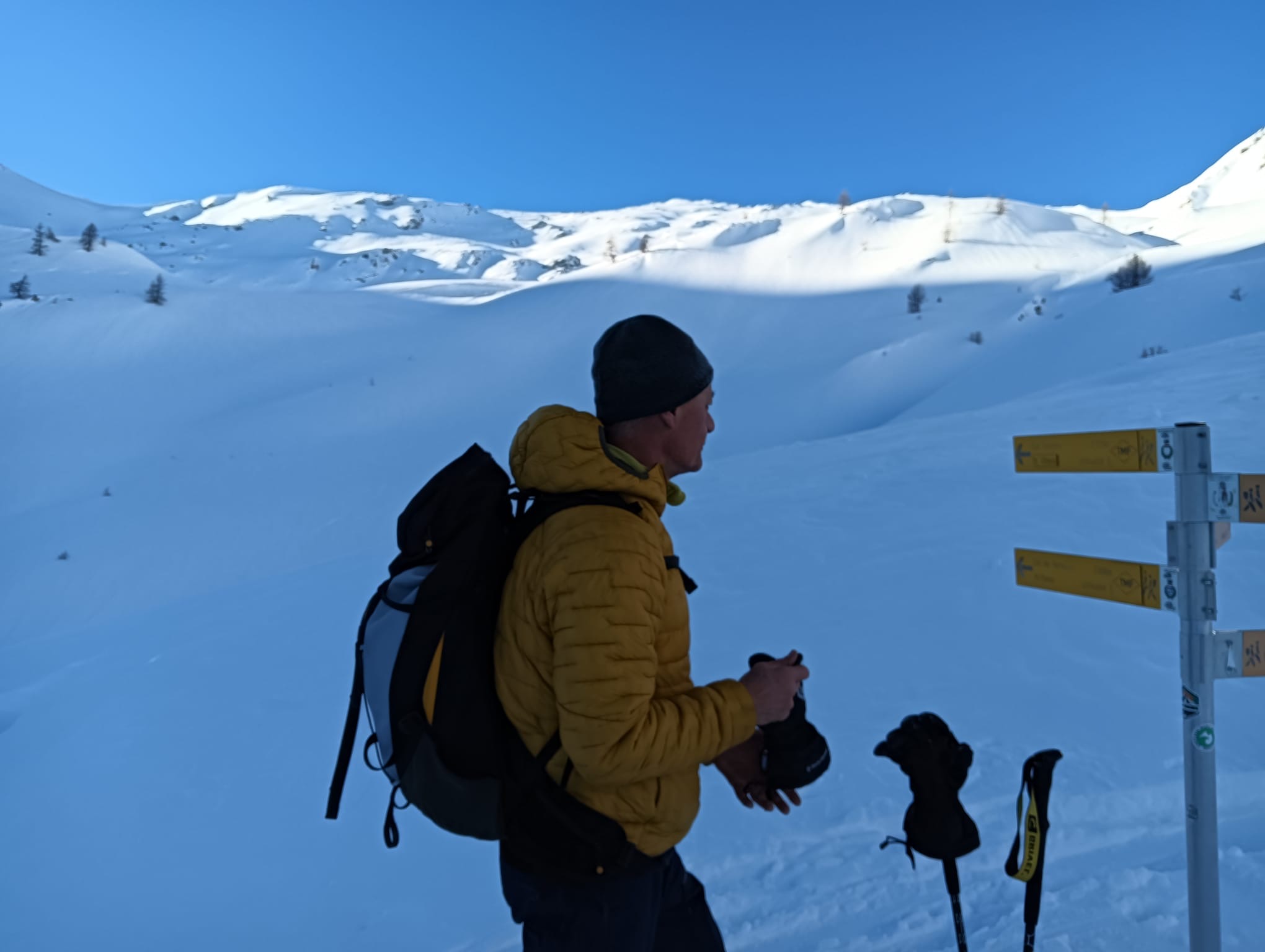 Giornata fotonica -6 la mattina alle 8 e assenza di vento anche al colle. Tanta gente in giro.