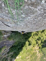 Bella via di stampo alpinistico su roccia molto compatta che non regala niente. Fatta con Andrea