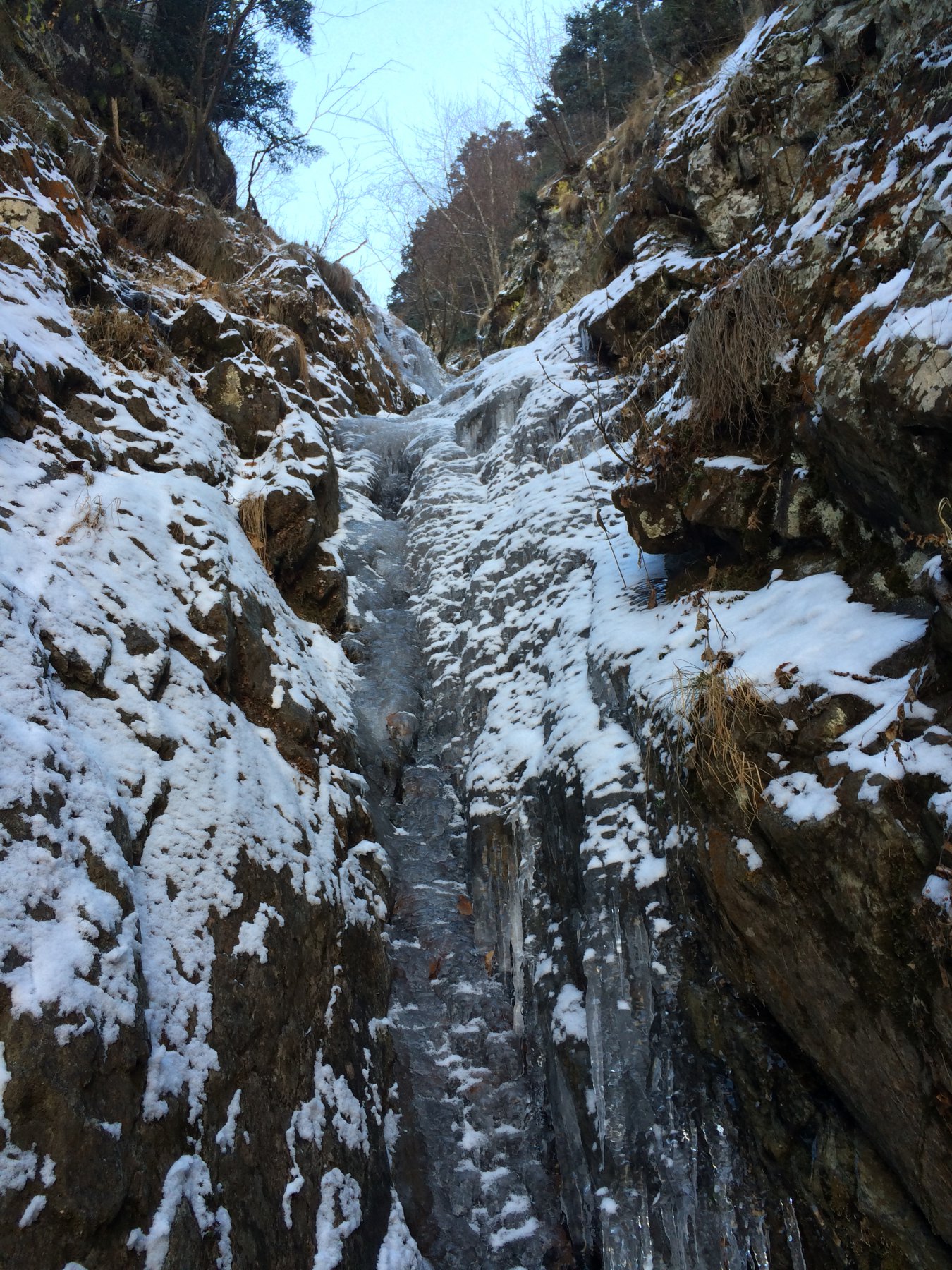 Bel regalo di Pasqua! Avvicinamento con sci (in discesa si arriva a Castello abbastanza comodamente)... Goulotte ben formata e ghiaccio abbastanza buono. Bella gita...