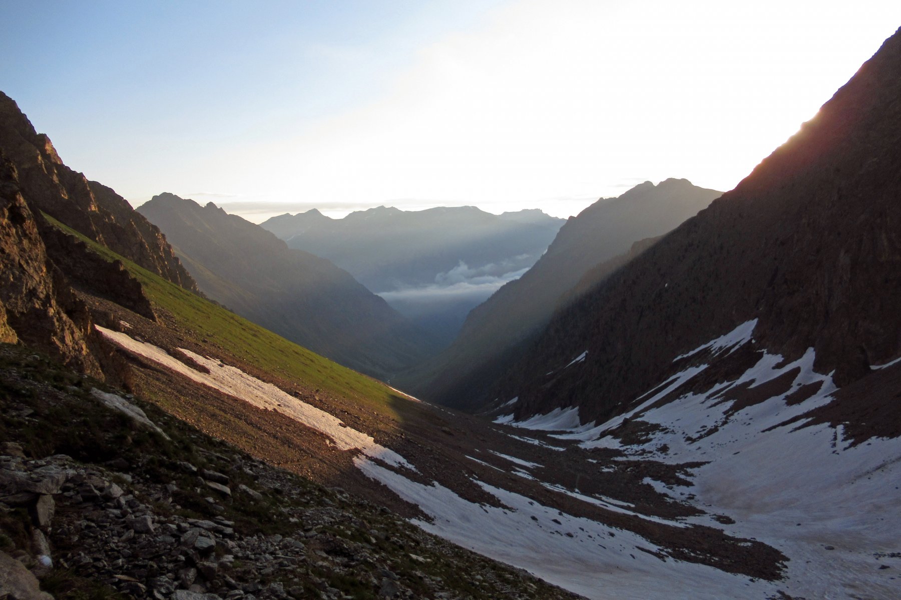 | volibear | Prime luci del giorno nei pressi del ricovero Lausa | volibear | Alba nel vallone di Pontebernardo | volibear | Cippo e giochi di nuvole in media valle | volibear | Vallone superiore,al centro il canale della Lausa | volibear | Canale per il passo di Vens e cima Borgonio | volibear | Il socio nella parte centrale del canale | volibear | Il bivacco Vigna | volibear | Rocca Brossé, Bec dal Vir e i canali della Testa Rossa