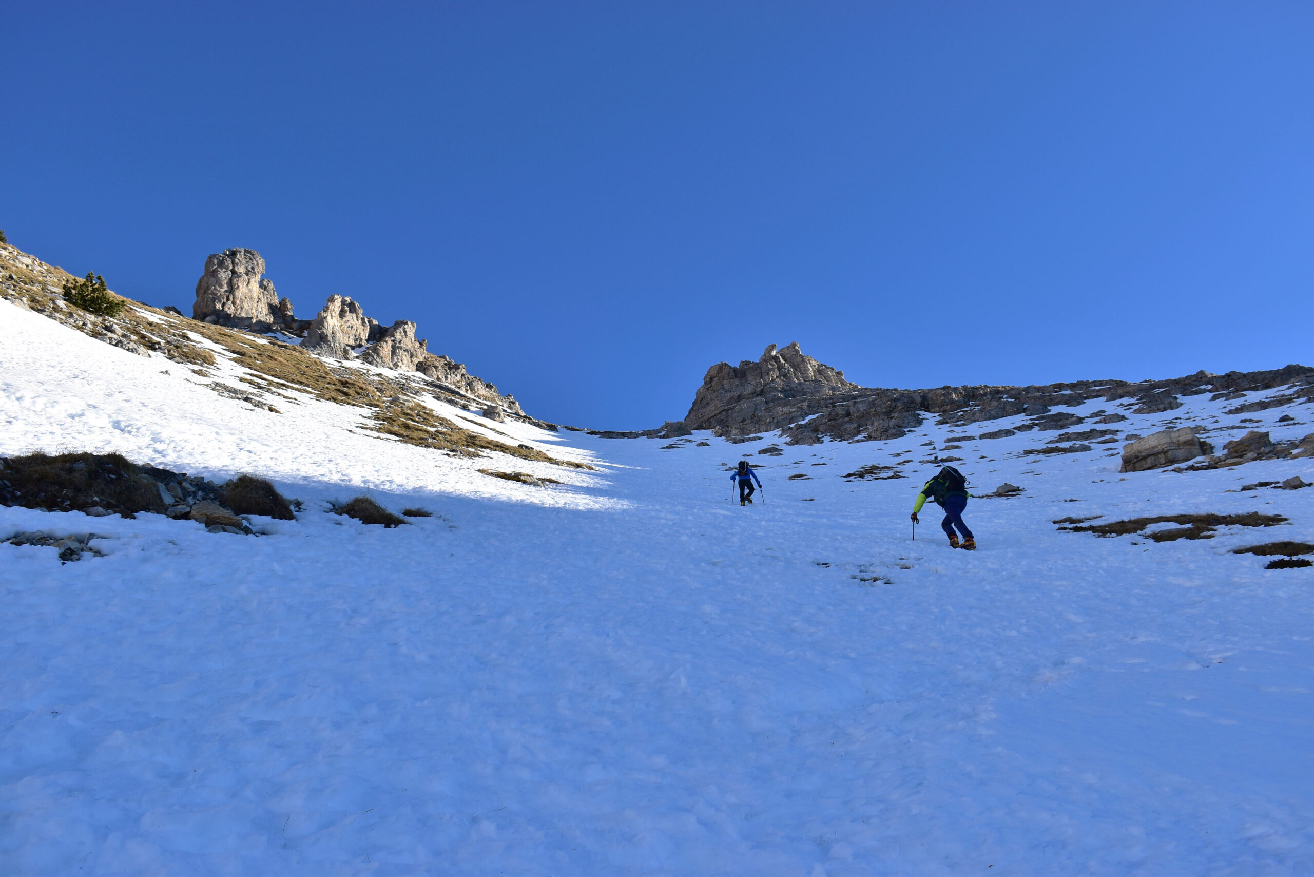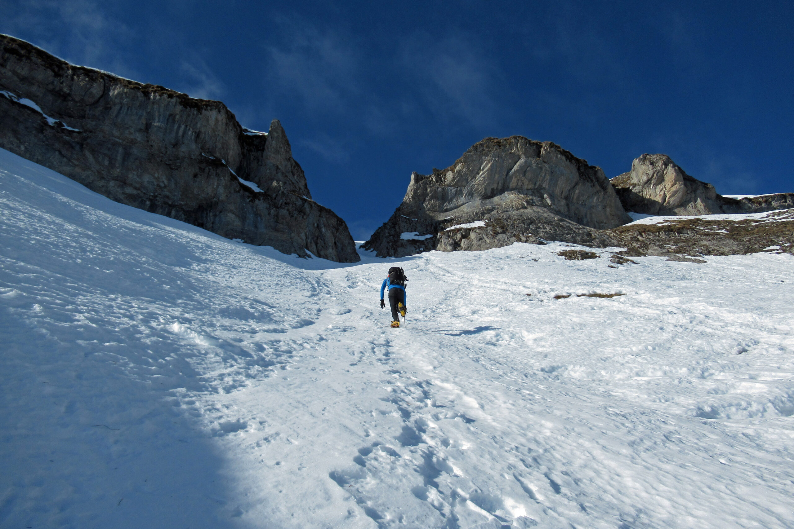 | volibear | Alla fine del conoide d'accesso,a breve l'imbocco del canale di sinistra | volibear | Fabio in salita nella prima parte del canale | volibear | Bel pinnacolo roccioso nella prima parte del canale | volibear | Sguardo indietro ormai nella parte medio alta | volibear | Verso l'attacco della cresta ovest (foto del socio) | volibear | Pochi metri ormai alla croce di vetta(foto del socio) | volibear | Croce di vetta e panorama (foto del socio)
