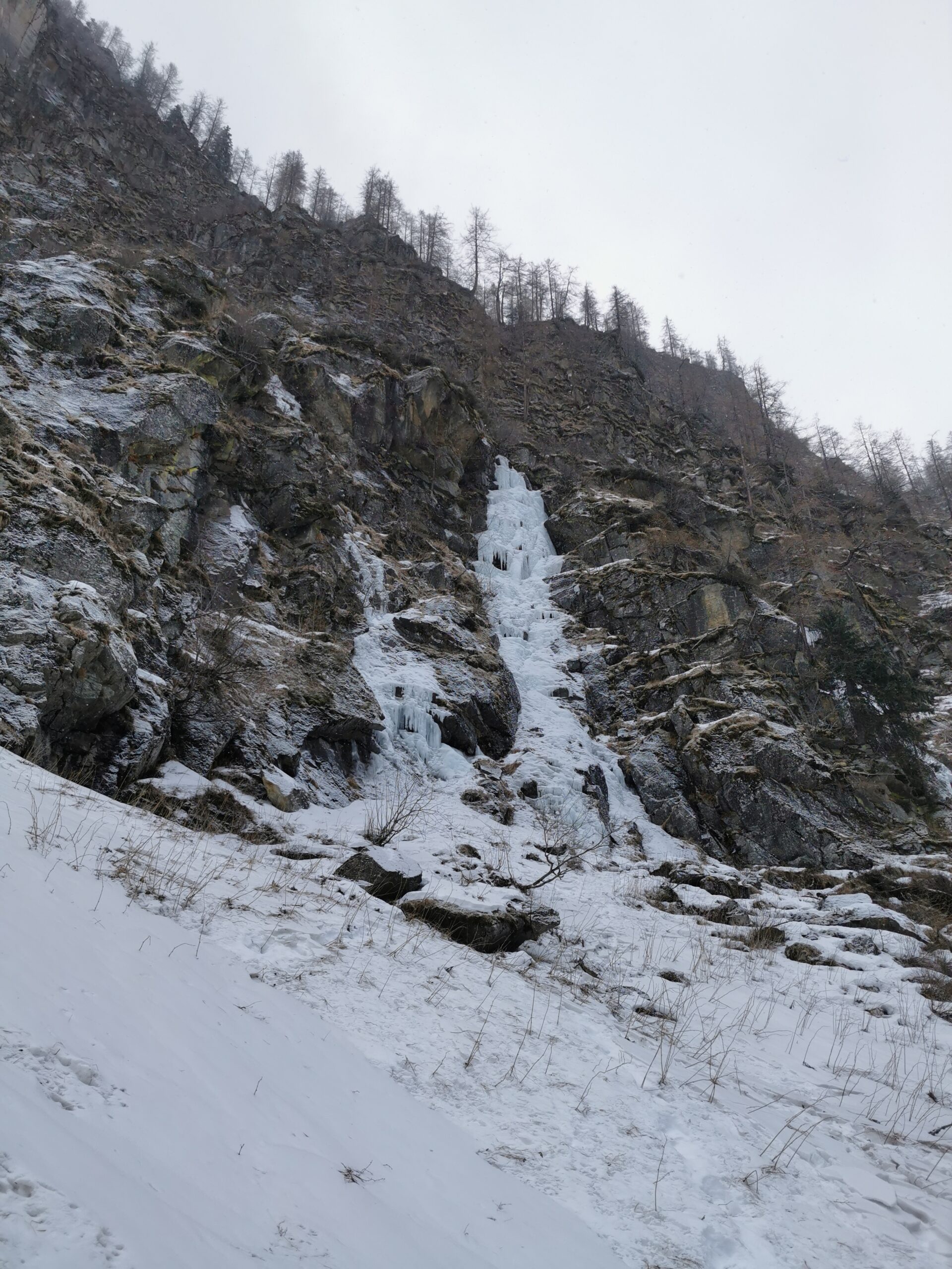 Sempre divertente alcuni tratti coperti dalla neve, ghiaccio complessivamente buono, usciti al 6 tiro nel bosco, salire fino a quota 2300mt e girare verso destra…