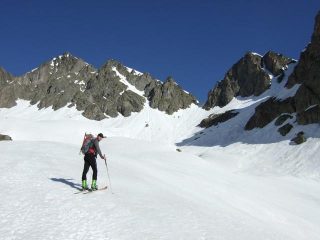 Si cammina con sci a spalle fino quasi all'inizio del pianoro del rifugio Migliorero. Al ritorno si scende sciando se si tiene la destra orografica…